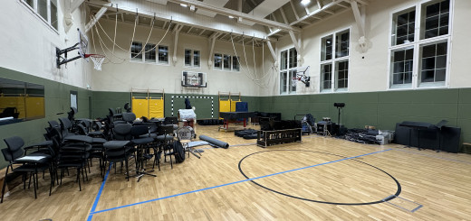 Langsam nähert sich unser Umzug einem Ende. Die Aula ist schon sehr leer, dafür ist die kleine Sporthalle umso voller. Die kleine Sporthalle wird in den nächsten zwei Jahren unsere Ersatz-Aula sein.