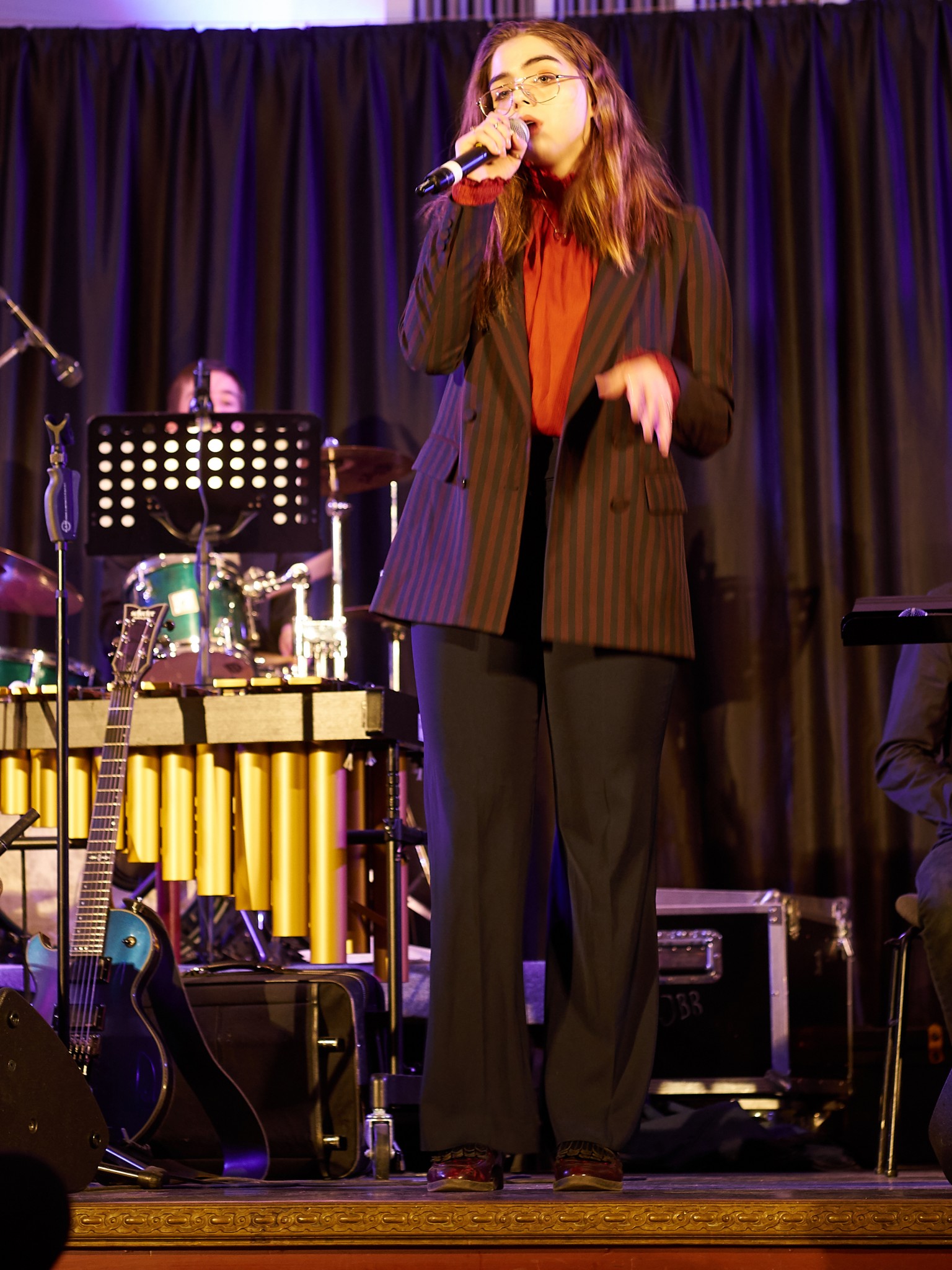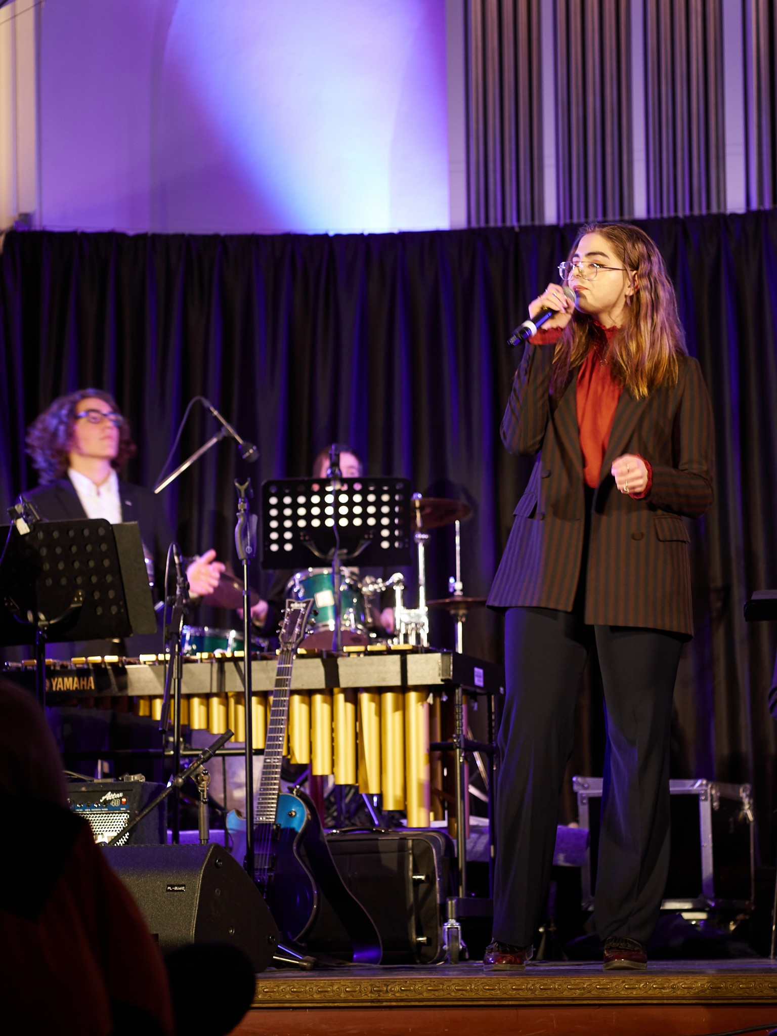 Aber bei dem von Jazz, Funk und Blues geprägten Konzert fielen nicht nur die Instrumentalisten auf, sondern auch die neue Sängerin der Bigband. Nach einem Casting für die Gesangsstimme wurde Maria Borovik aus der zehnten Klasse ausgewählt. Dass sie die Richtige für diese Position ist, stellte Maria eindrucksvoll unter Beweis. Denn sie sang zu den Songs von Amy Winehouse und zwar mit einer sehr gut angepassten Intensität und einer perfekten Ausstrahlung.