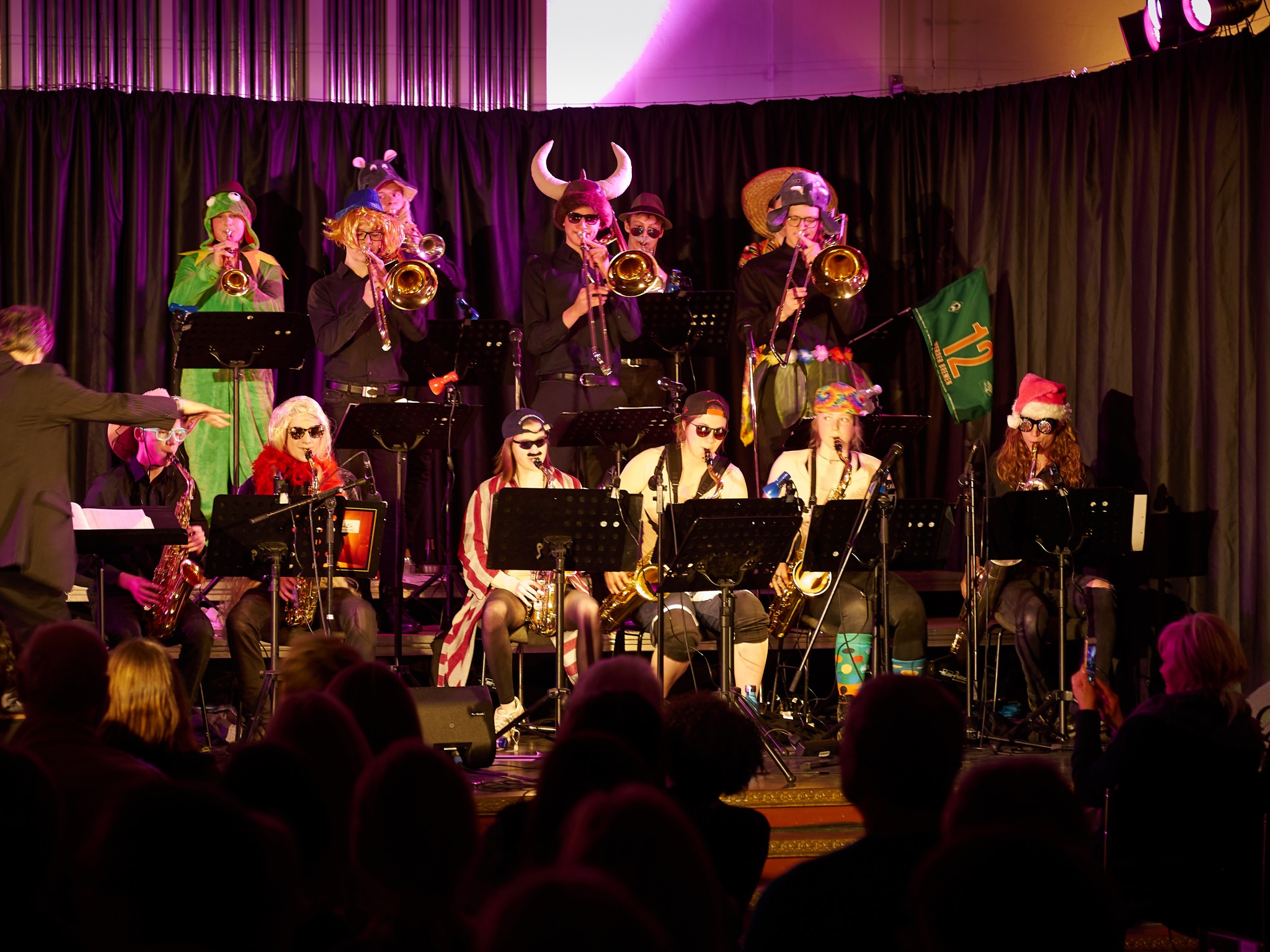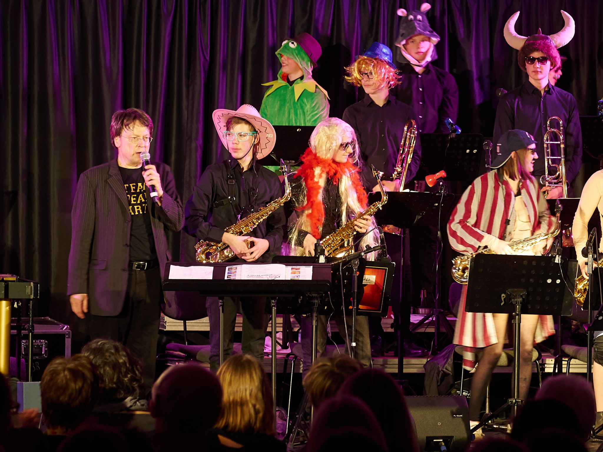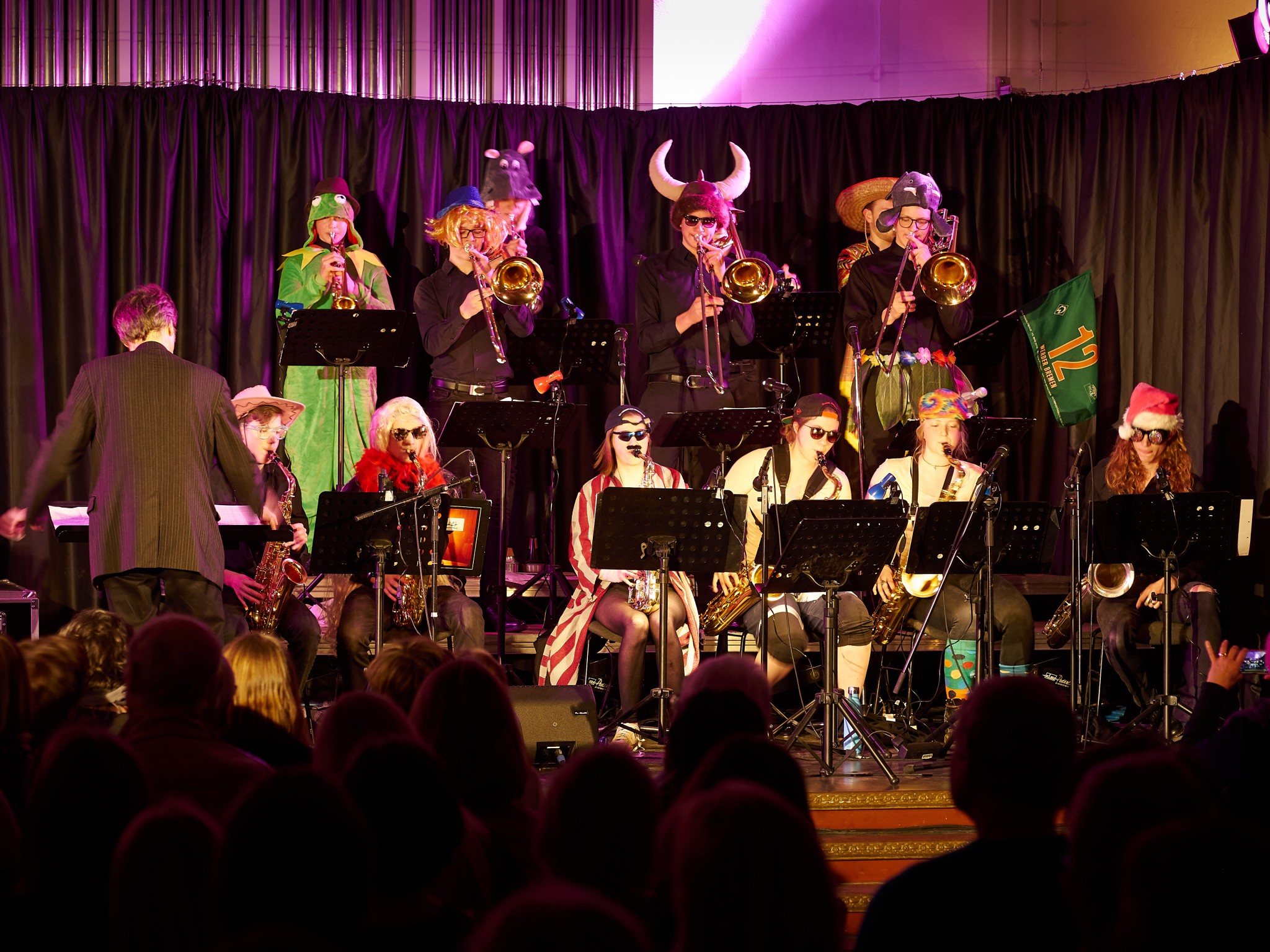 Einen darf man jedoch nicht vergessen: Hartmut Jung. Die Bigband gehört so zum Johanneum wie Hartmut zur Big Band. Er ist der Dirigent des Ensembles und der heimliche Star der Konzerte. Ohne ihn würde nichts spielen und er handelt auch blitzschnell, wenn ganz fix ein neuer Solist für jemanden einspringen muss. Deswegen darf er sich auch zu Recht feiern lassen.