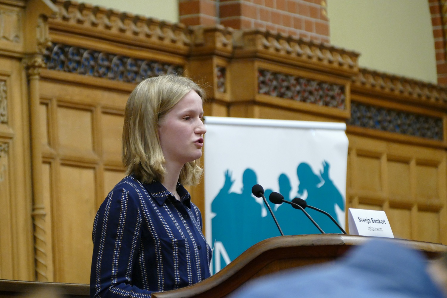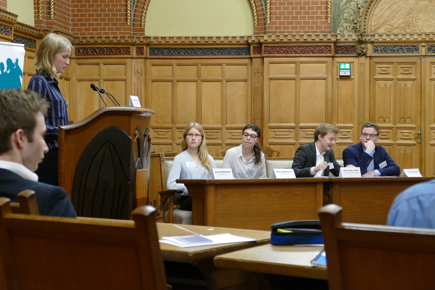 „Die Leute müssen endlich anfangen, sich auch mit vermeintlich abwegigen Meinungen argumentativ auseinanderzusetzen“ – mit diesen Worten begrüßte Julika Stenzel die Gäste zur siebten Lübecker Debattiermeisterschaft. Vor vollgefüllten Reihen des Lübecker Bürgerschaftssaals argumentierten Schülerteams aller Lübecker Gymnasien zu Themen wie „Fridays For Future“ oder der Umbenennung von nach Personen benannten Straßen – und am Ende des Tages wurde ein Siegerteam gekürt.