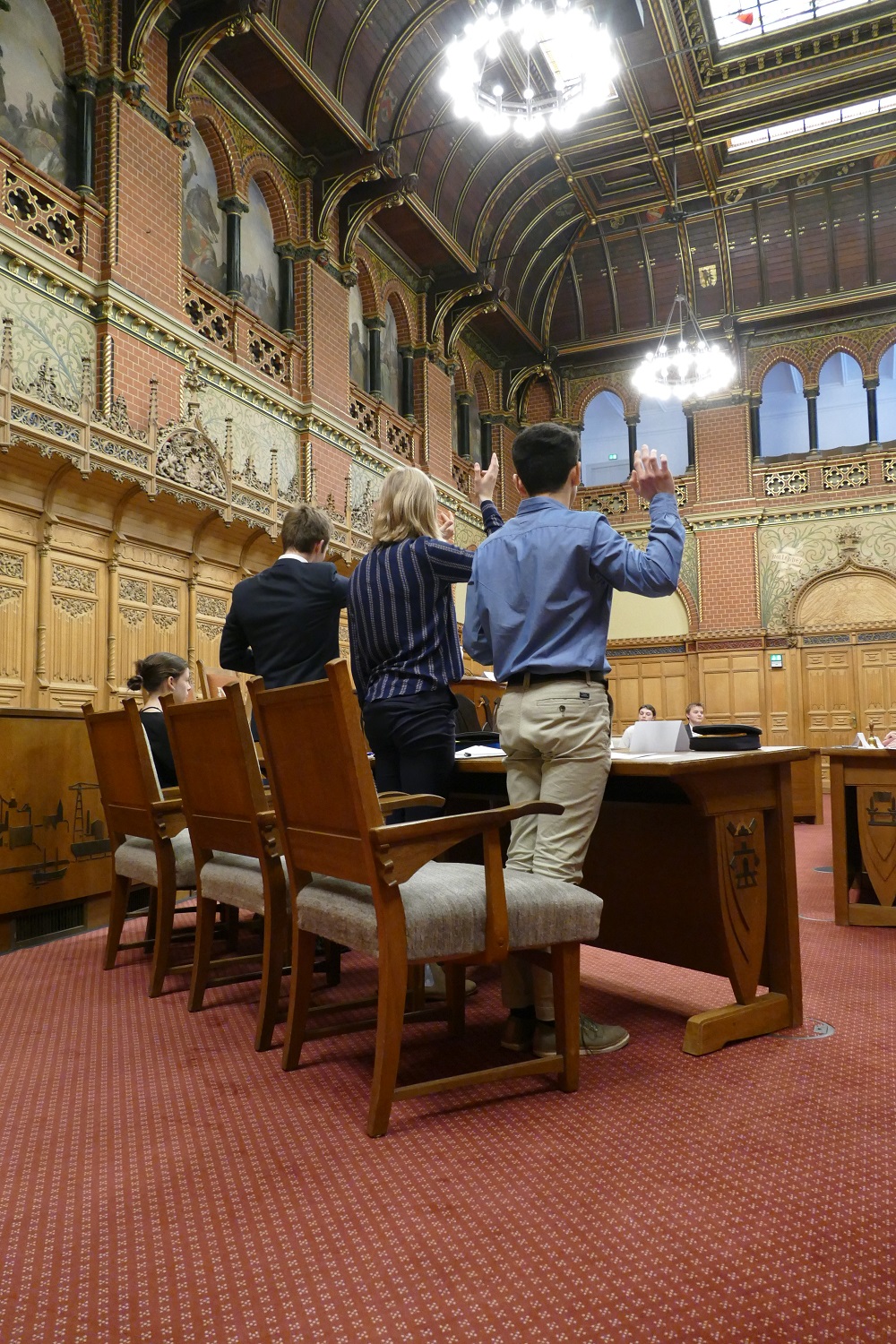 An Feuer fehlte es den Debatten trotz allem selten: Nicht wenige Debatten mussten vom Präsidenten unterbrochen werden, da die Reden durch zu viele Zwischenrufe gestört wurden. Der sehr konfrontative British Parliamentary Style, in dem wir debattierten, erinnerte beispielsweise in unserer Brexit-Debatte doch sehr an die teils sehr lebhaften Umstände im britischen Unterhaus.