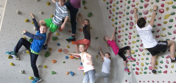 Zuerst sind wir im Boulder Bereich und machen Spiele zum Aufwärmen, z.B. Feuer – Wasser – Eis, Merkball, Weltreise, Memory oder andere Sachen. Danach gehen wir runter und klettern meistens am Seil. Wenn am Ende noch Zeit ist, schaukeln wir meistens noch. Falls wir nicht am Seil klettern, sind wir in der großen Boulder Halle zu finden. Die ist viel größer als der Boulderbereich, aber auch eher für Erwachsene, so dass man nicht so viele Routen schaffen kann. Aber jedenfalls haben wir immer viel Spaß.