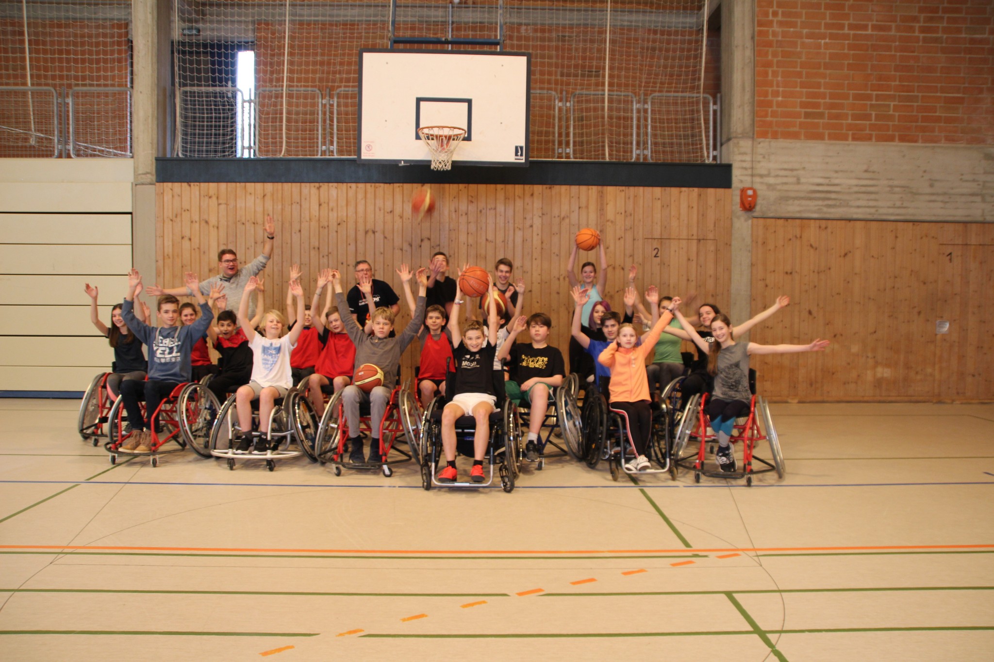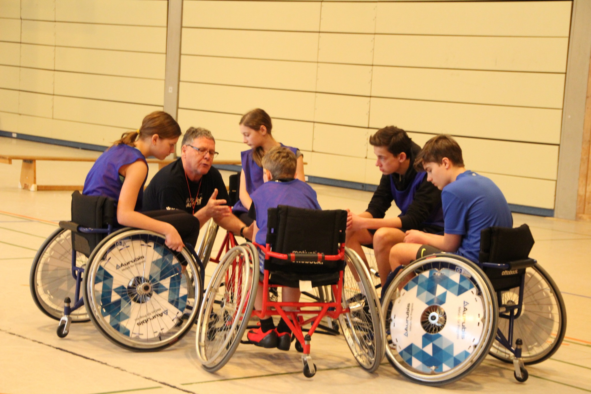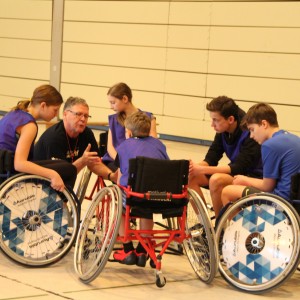 Doch da dieser sich nicht mehr meldete, kam Herr Hillringhaus auf die brillante Idee, sich auch im Praktischen mit dem Thema Rollstuhlfahren auseinander zu setzten. Deshalb wurden der Klasse 7c insgesamt 17 Rollstühle ausgeliehen und der sympathische Herbert Tietz erklärte uns die Regeln des Rollstuhlbasketballs.