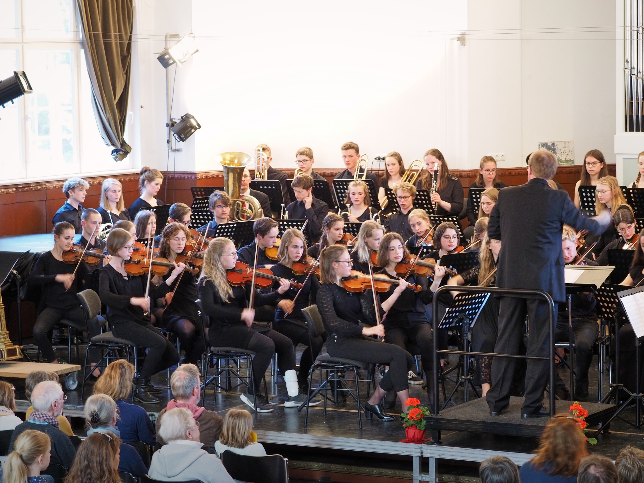 Bei der Filmmusik von „Harry Potter“ verwandelte sich die Aula in Hogwarts und Herr Maetzel apparierte vom Dirigentenpult an die Tuba ins Orchester.