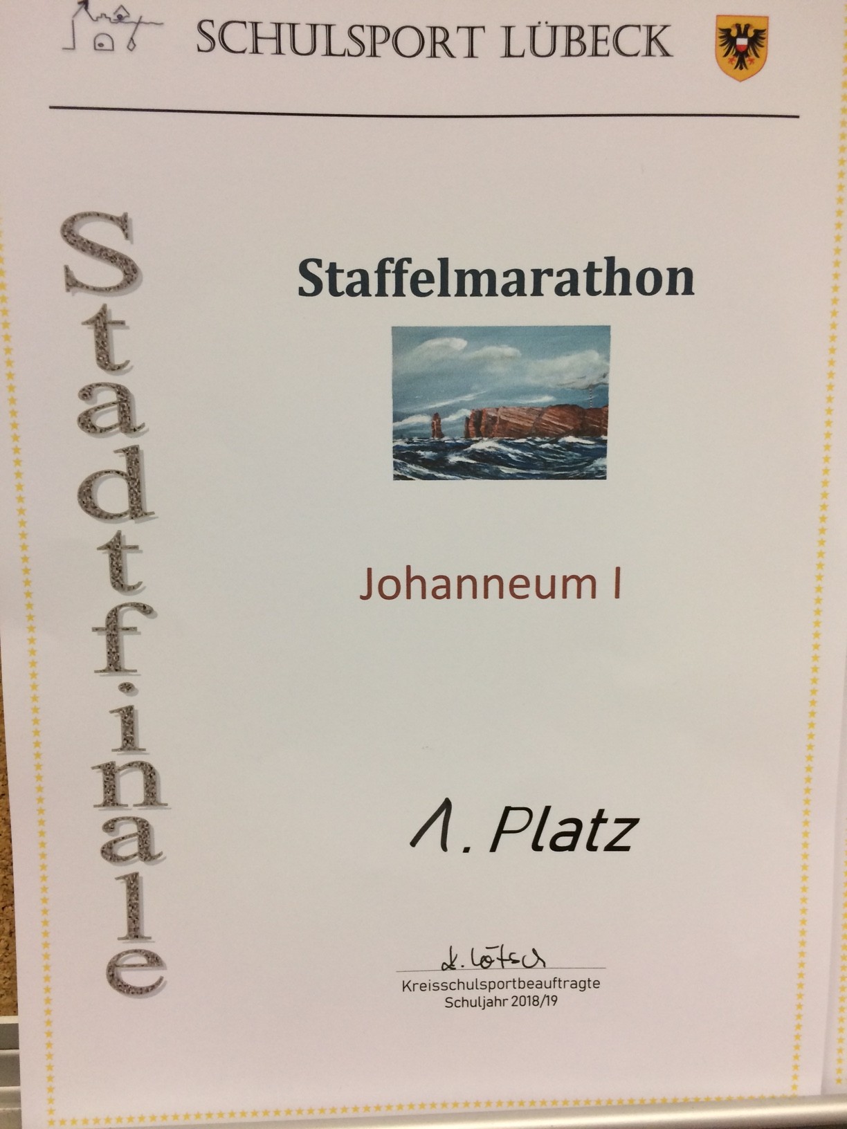 Dabei setzte sich unser Team gegen drei andere weiterführende Schulen durch. Das Teilnehmerfeld bestand aus acht Grundschulstaffeln – hier siegte die Kahlhorstschule vor der Schule Grönauer Baum – und zehn von Lübecker Gymnasien. Daher darf Lübeck wohl wieder mehr als nur die Erstplatzierten nach Helgoland entsenden, so dass es am 14./15. Juni sehr wahrscheinlich zu einer Neuauflage der inzwischen bewährten Helgoland-Partnerschaft des Johanneums mit dem Katharineum kommt, dessen schnellste Staffel auf den zweiten Platz lief.