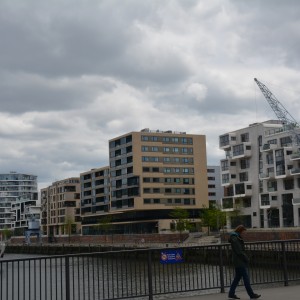 Bei einem Spielplatz nahe des Marco Polo Turms erklärte er dann, dass an der Stadtplanung und –entwicklung nicht nur Erwachsene, sondern auch Kinder mittels eines Kinderrates beteiligt werden. Sie sagen den entsprechenden Architekten, was sie sich z.B. für Spielplätze etc. wünschen. So entstanden beispielsweise Spielgeräte, die auch für Senioren geeignet sind, damit auch sie mit ihren Enkeln spielen können. Der vorher genannte Aspekt der verminderten Autonutzung wird realisiert durch Carsharing, Fahrradverleih Angebote und auch gute Bus- und U-Bahn-Verbindungen. PKW-Stellplätze hingegen kosten bis zu 40.000 €.