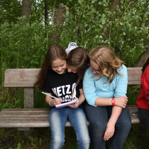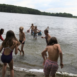 Innerhalb meines Zimmers und des anderen Mädchenzimmers haben wir Werwolf gespielt. Anschließend sind wir allesamt zum See gegangen. Fast alle waren Schwimmen. Jemand berichtete von einem Spinnen-Grashüpfer, der sich als Blutegel entpuppte. Danach gab es noch eine spontane kleine Wanderung. Wir hatten kein Ziel, also sind wir irgendwann umgekehrt. Dann wurde es auch langsam dunkel und es gab auch Abendbrot. Ein bisschen später hatten die Paten ein Spiel vorbereitet. Es wurde draußen gespielt und heißt: Tisch des Hauses. Es geht so: die Paten nannten einen Gegenstand, wie z. B. Haarbürste, dann musste man so schnell wie möglich in ein X-beliebiges Zimmer laufen und den Gegenstand holen, dann wieder raus laufen und den Gegenstand auf den Tisch, an dem die Paten saßen, legen. Wir saßen auf Bänken. Es gab vier Teams. Es gab auch Challenges wie beispielsweise: verwandelt ein Mädchen in einen Jungen und umgekehrt oder findet ein Liebespaar und erfindet eine Lovestory. Als das Spiel zu Ende war, mussten einige ihre Sachen suchen, aber es fand sich alles wieder an. Am späten Abend gab es noch ein Lagerfeuer. Dort wurde erneut Werwolf gespielt.