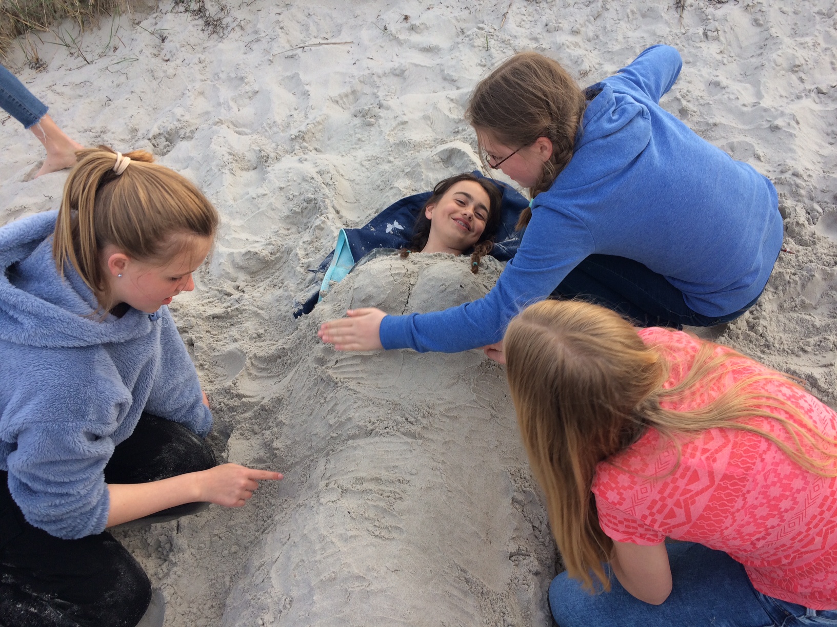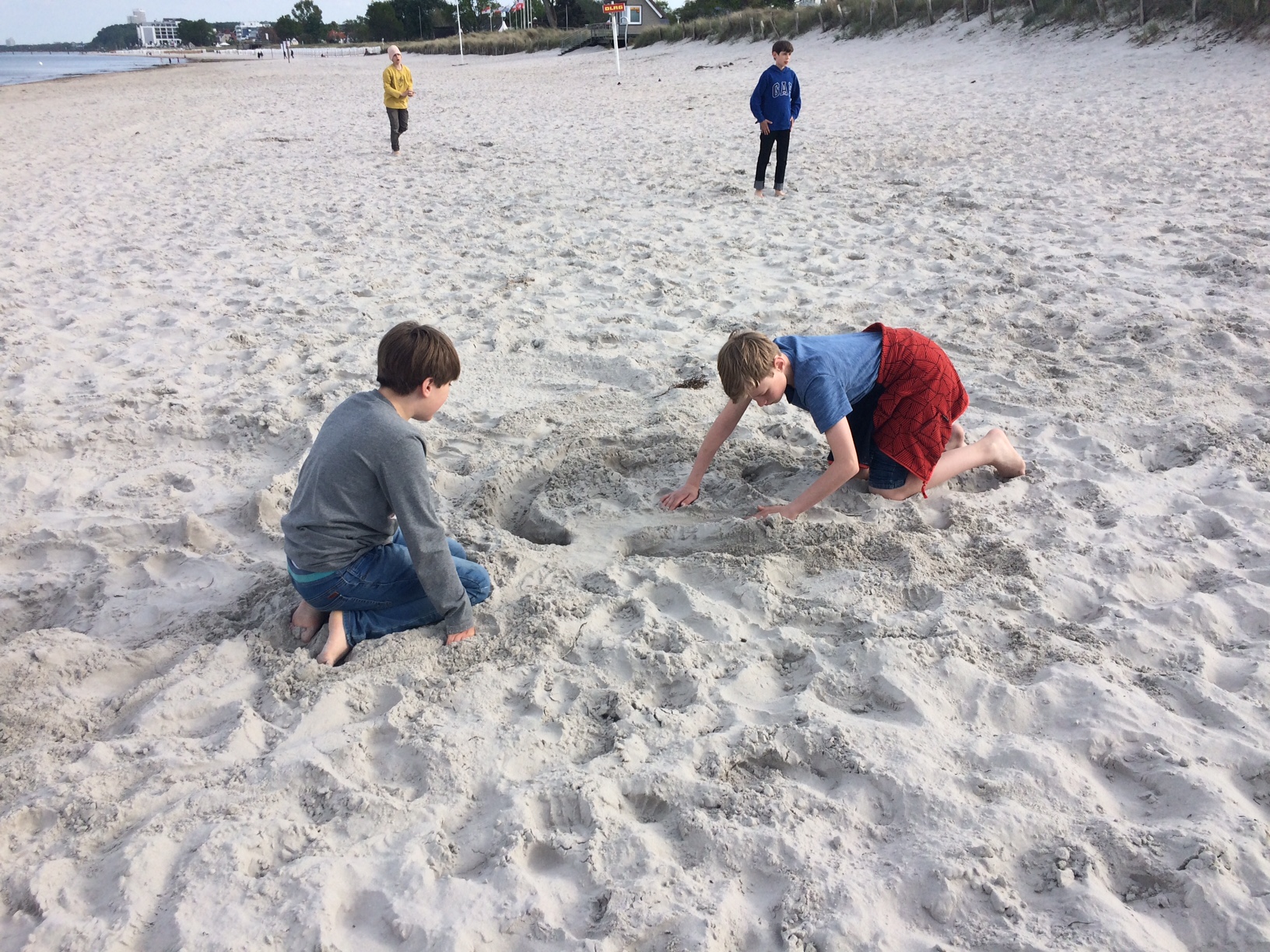 - die riesigen Hulahoop-Reifen, mit denen die 5b am Strand experimentieren durfte.