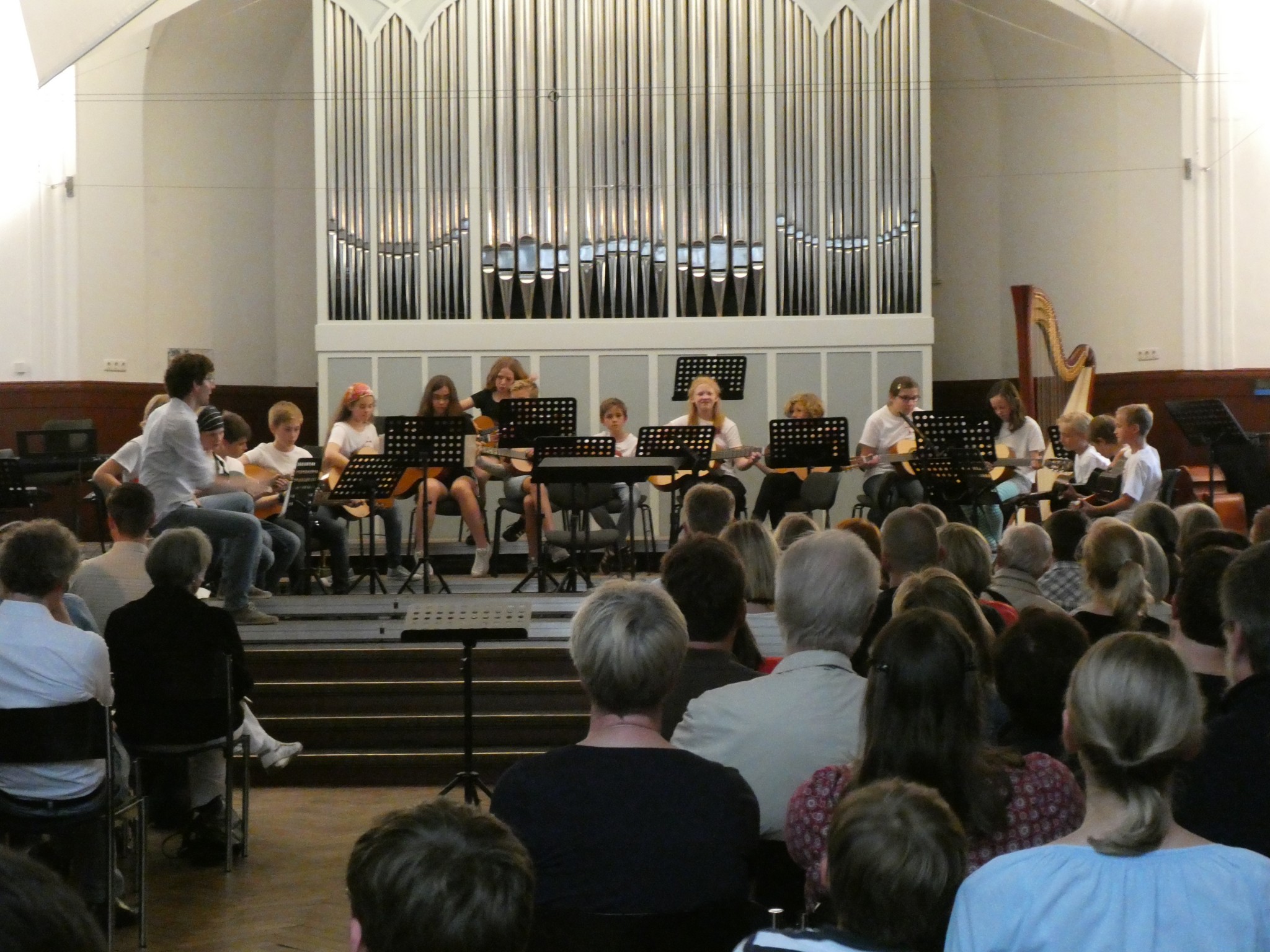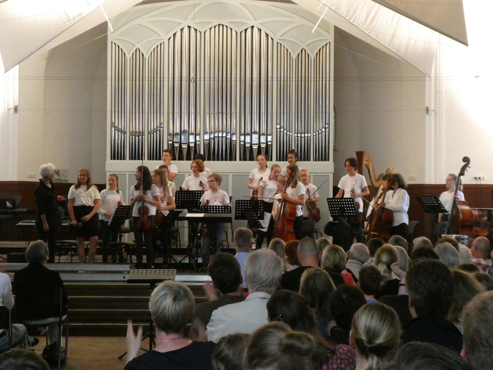 Am Schluss zeigte das JuniOrchester sein ganzes Können mit dem Lied „Casatschok“ von Rubaschkin. Viele Geigen und Celli, ein Schlagzeug, eine Harfe und ein Kontrabass bildeten das Orchester.
