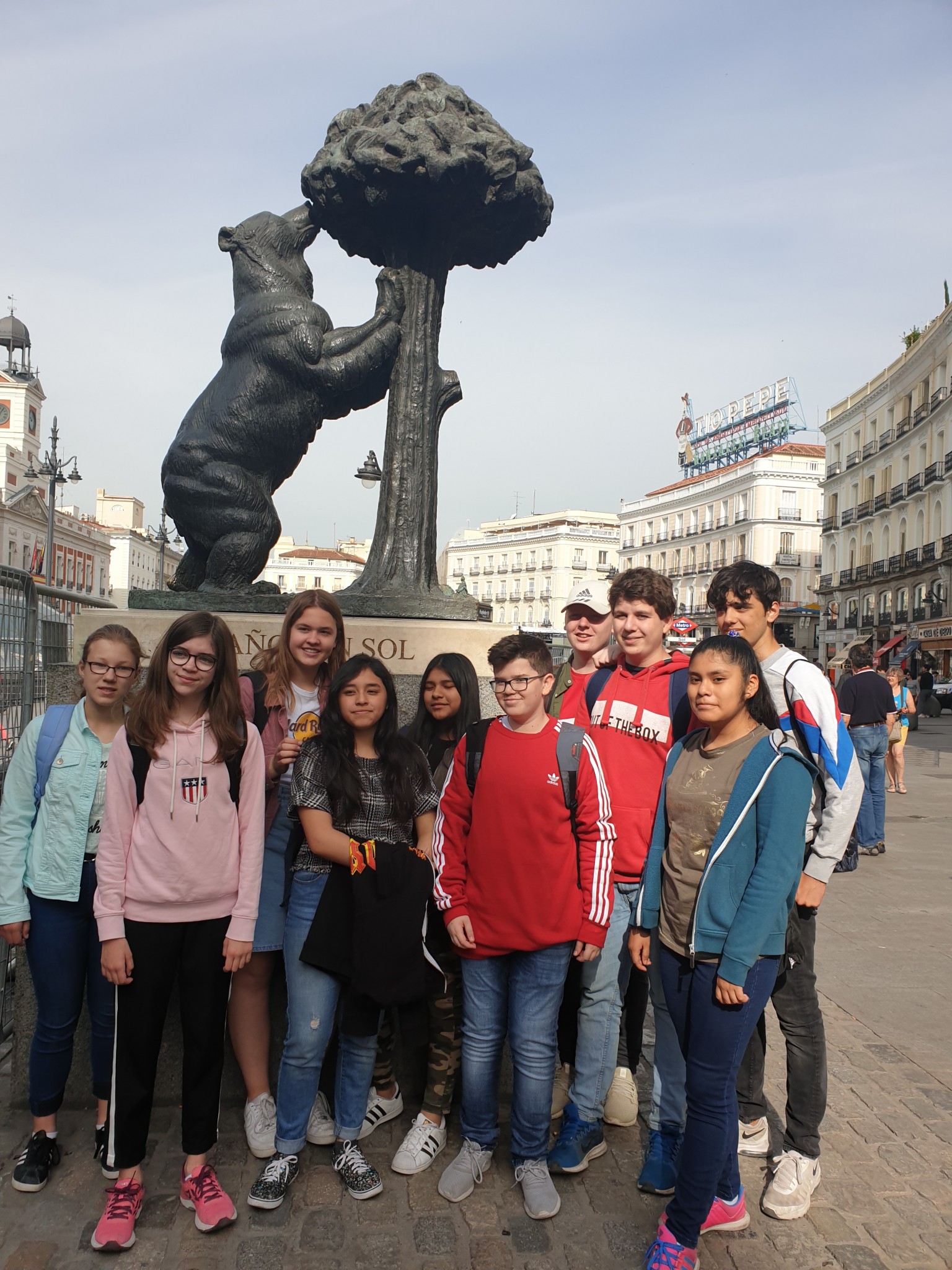 Den ganzen Tag haben wir Zeit mit der Familie gehabt. Wir waren an verschiedenen Orten, wie zum Beispiel am Real Madrid Stadion. Ganz beliebt sind die verschiedenen Plätze in Madrid. Diese sind viele Treffpunkte von Jugendlichen. Wir haben auch viele Monumente, historische Gebäude und Aussichtsplattformen besucht. Am Abend haben wir uns alle getroffen in einem Park mit unseren Lehrern und haben eine Foto-Rallye gemacht.