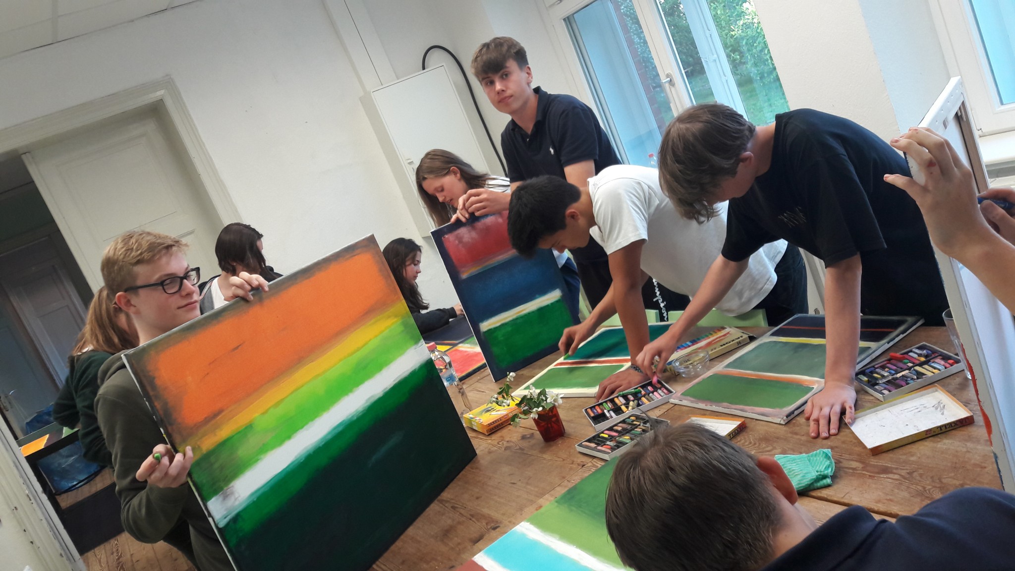 Ein außergewöhnlicher Malworkshop der Q1e mit Frau Ponomarew-John führte am Wochenende in die Natur und in die Tiefen der Malerei von Mark Rothko. Ganz ohne Zensurendruck, im Selbstversorgerhaus mit einem Besuch des Künstlerhauses Schloß Plüschow…eine wunderbare Auszeit.