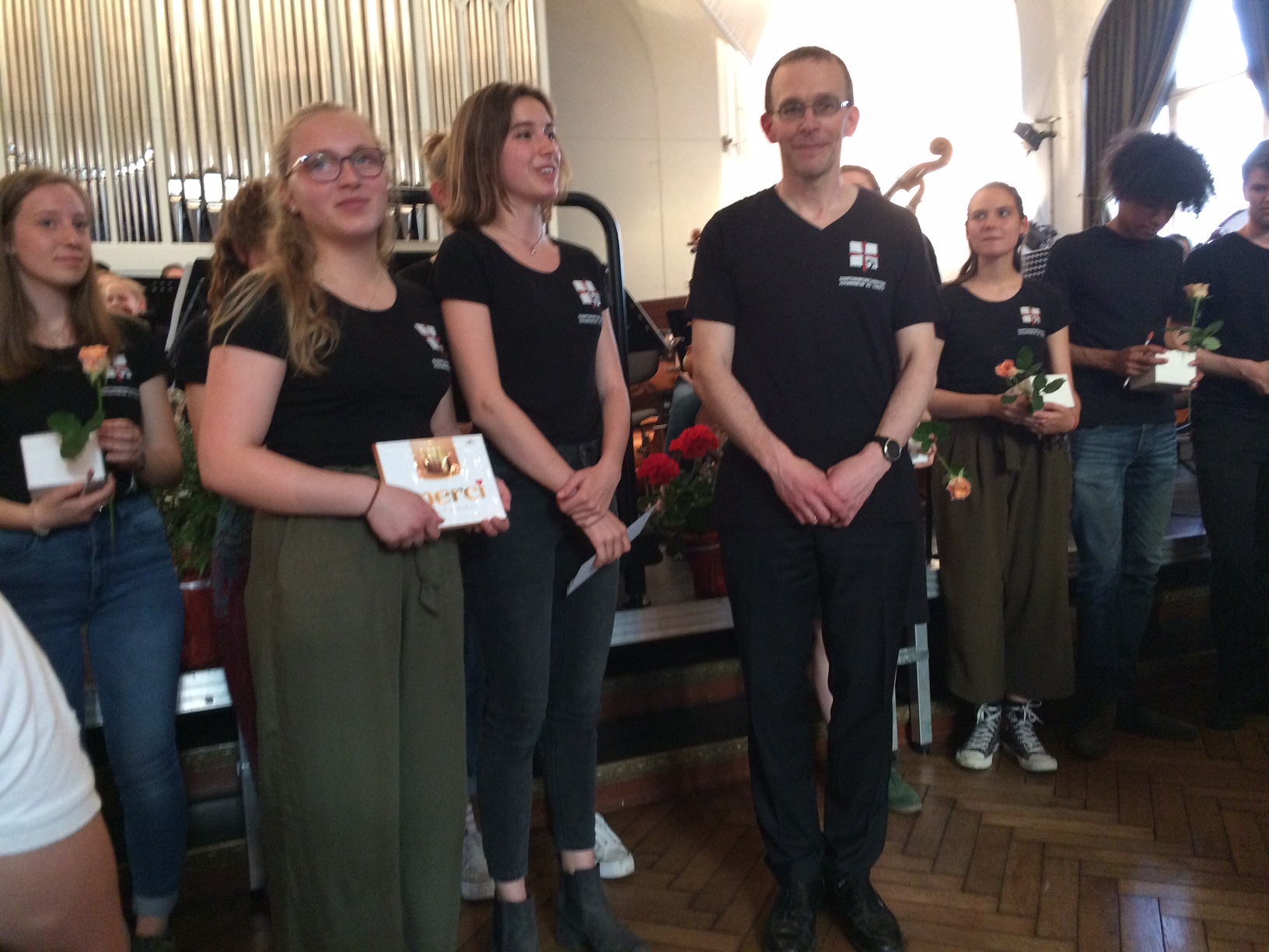 Von so vielem muss ich jetzt, hier auf der Bühne, Abschied nehmen. Als ich dann endlich die Rarität, die Musik-am-Johanneum-Tasse, in den Händen halte, wird mir klar, dass ich mich mit einem lachenden und einem weinenden Auge verabschiede, da uns zwar das gemeinsame Musizieren sicherlich fehlen wird, aber wir dennoch die Musik in Zukunft als treue Begleiterin an unserer Seite haben werden.