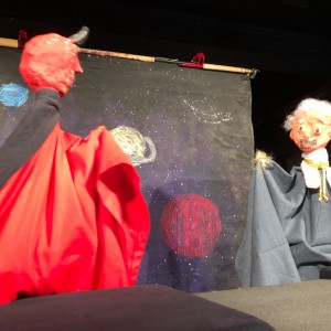 Beim Sommerfest wird heute ein außergewöhnliches Figurentheater noch einmal zu sehen sein! Im Deutschunterricht bei Frau Sandkühler-Jensen waren die Schülerinnen und Schüler der 7c bei der Lektüre von Theodor Storms „Pole Poppenspäler“ auf den „Urfaust“ als Figurentheater gestoßen. Sie lernten den Anfang und das Ende der Puppenspielfassung von Karl Simrock kennen und schrieben für den Mittelteil eigene Szenen. Zeitgleich sind im Kunstunterricht unter der Anleitung von Frau Ponomarew-John zu den entsprechenden Charakteren Handpuppen entstanden, mit denen das inzwischen fertiggestellte Stück als „Urfaust“-Variante im Studio aufgeführt wurde.