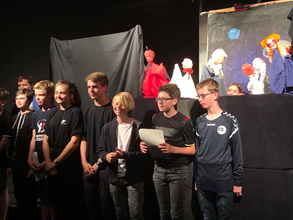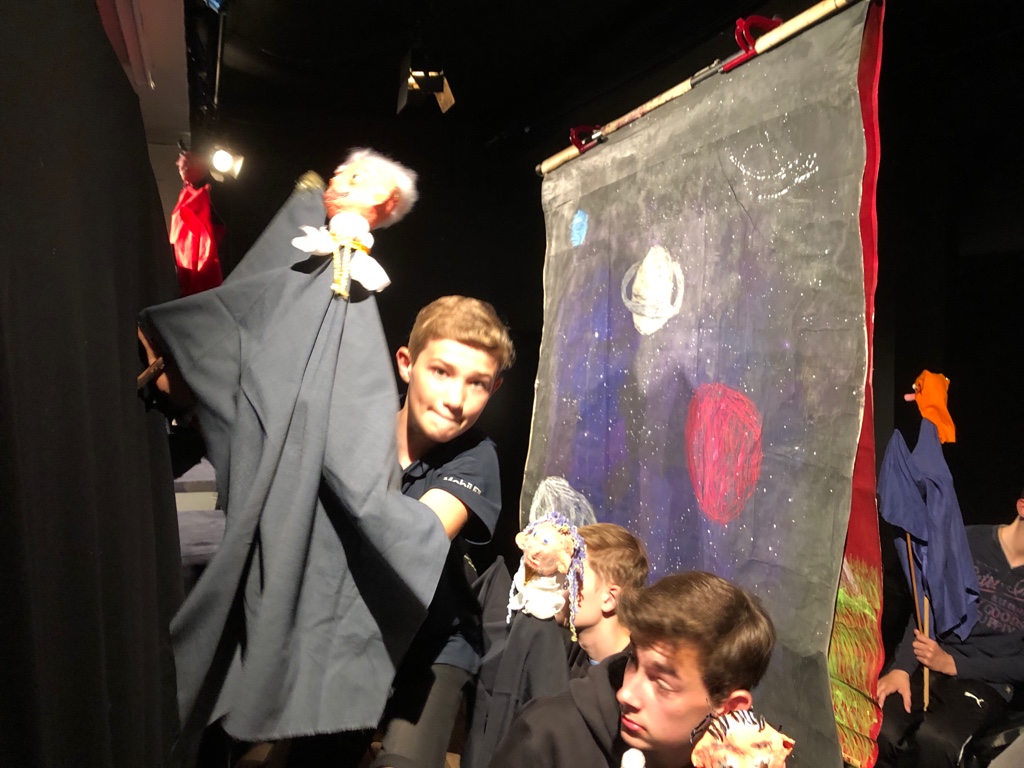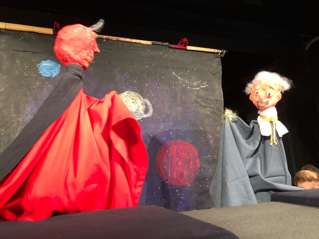 Beim Sommerfest wird heute ein außergewöhnliches Figurentheater noch einmal zu sehen sein! Im Deutschunterricht bei Frau Sandkühler-Jensen waren die Schülerinnen und Schüler der 7c bei der Lektüre von Theodor Storms „Pole Poppenspäler“ auf den „Urfaust“ als Figurentheater gestoßen. Sie lernten den Anfang und das Ende der Puppenspielfassung von Karl Simrock kennen und schrieben für den Mittelteil eigene Szenen. Zeitgleich sind im Kunstunterricht unter der Anleitung von Frau Ponomarew-John zu den entsprechenden Charakteren Handpuppen entstanden, mit denen das inzwischen fertiggestellte Stück als „Urfaust“-Variante im Studio aufgeführt wurde.