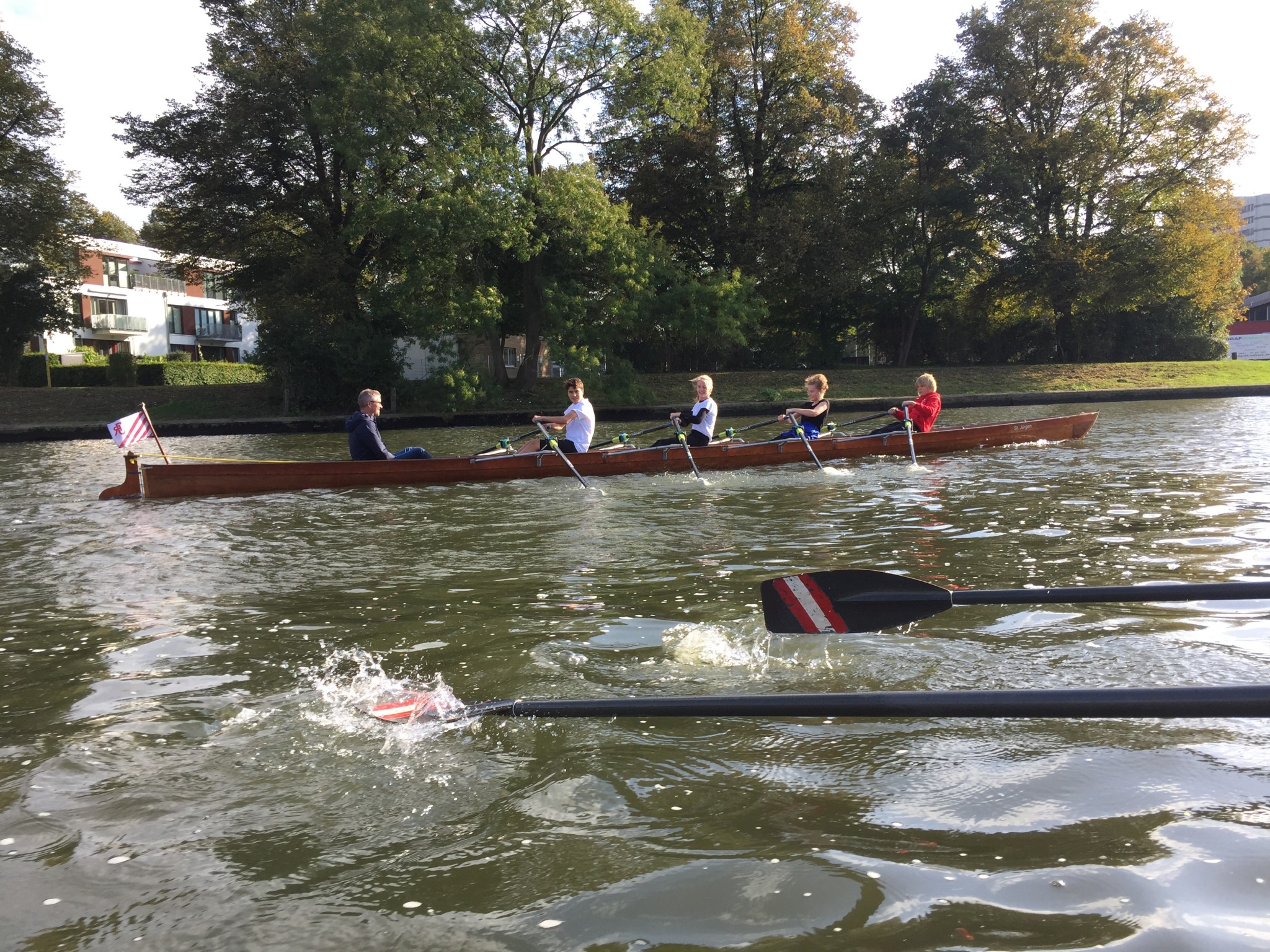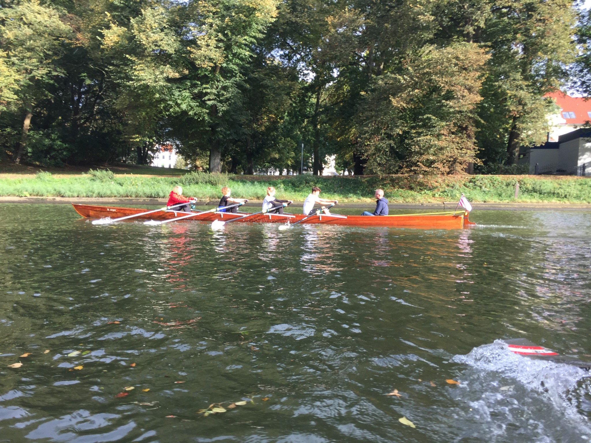 Nach einigen Wochen Rudertraining startete die Ruderriege des Johanneums am 28. September in gut gelaunter Besetzung bei der diesjährigen Trimmregatta der Lübecker Schulen und ruderte im Gig-Doppelzweier Roter Flitzer sowie im Gig-Doppelvierer St. Jürgen um Lübecks Altstadt.