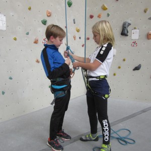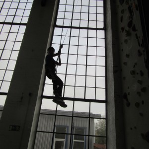 Aber im Winter sind wir in der Kletterhalle zu finden. Erst geht es in den Boulderbereich, wo wir spielen und unsere Technik verbessern. Das ist immer ganz schön anstrengend, aber oft auch lustig, wenn Frau Böttger sich merkwürdige Aufgaben ausdenkt, z.B. blind zu klettern oder Griffe zu finden. (Wer schafft die meisten Routen? – Das ist Jan!)