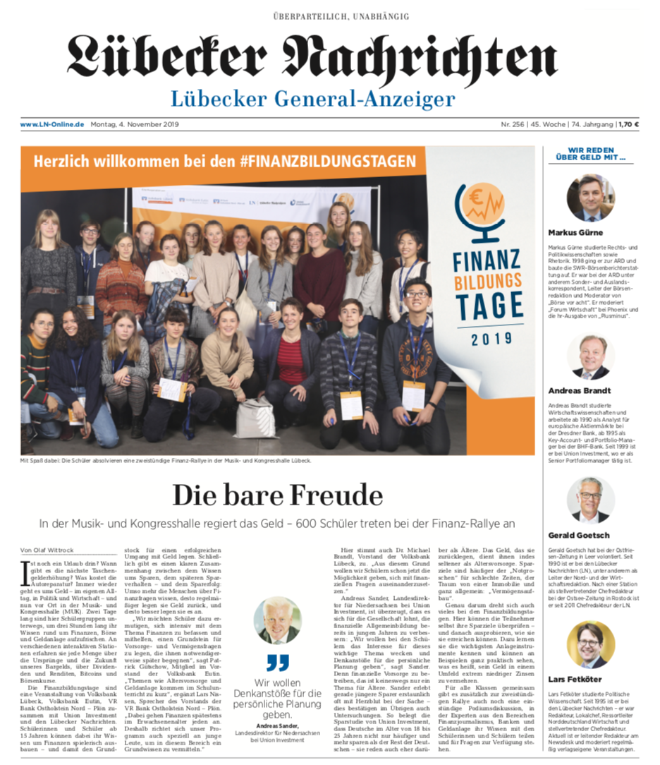 Dies war unsere Begrüßung beim Finanzbildungstag Lübeck, den die Wirtschaft/Politik-Kurse der Q1 am Montag in der MuK besucht haben. Raus aus der Theorie und rein in die Praxis – an interaktiven Stationen ging es in vier Themenblöcken um Fragen wie Zins und Inflation, Aktien und Börse, Zentralbank und Kryptowährungen sowie die Rolle von Finanzjournalisten.
