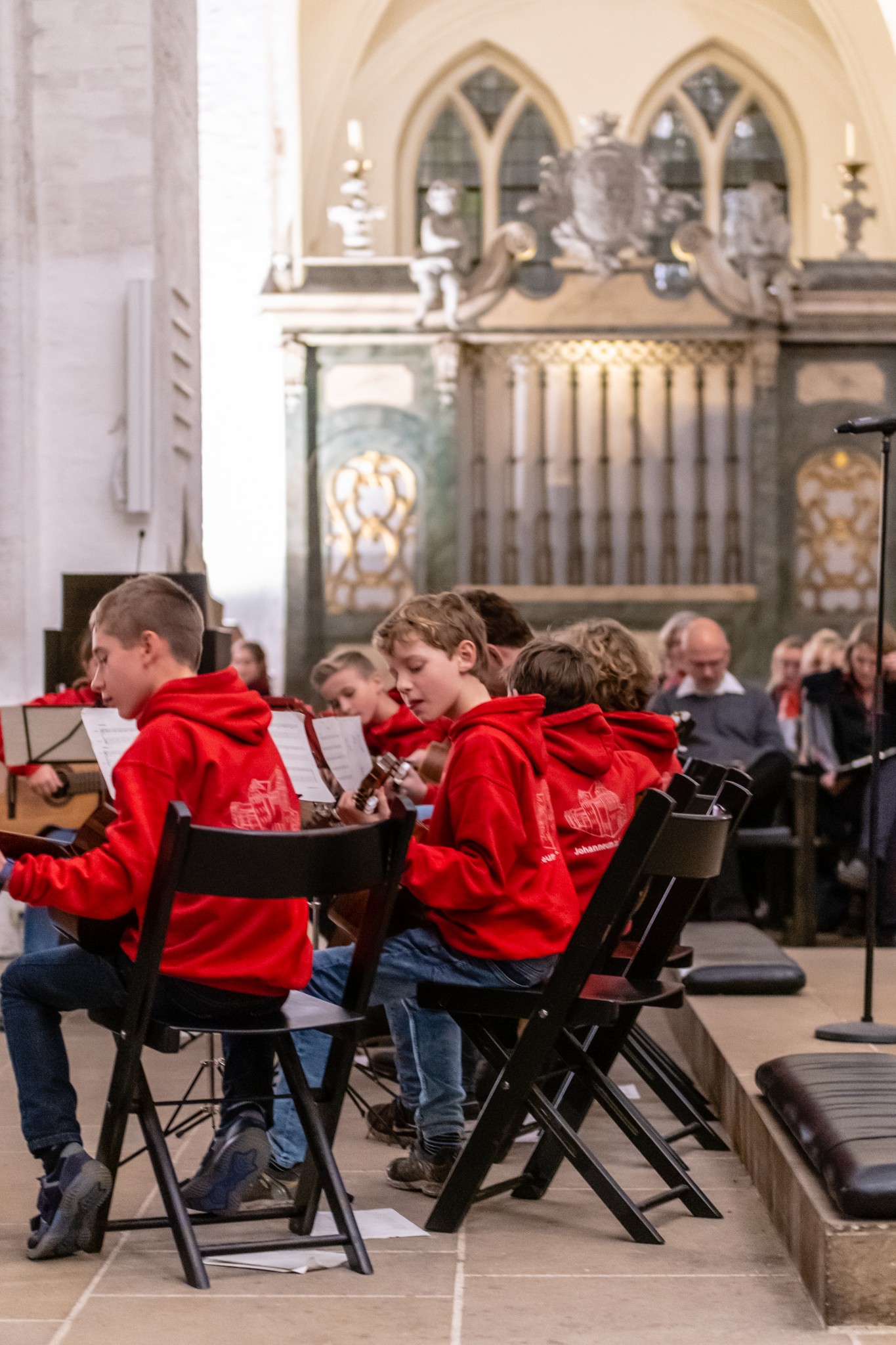 Langsam legt sich Stille über die vollen Sitzreihen des Doms. Am Nikolaustag haben die Ensembles des Johanneums zu ihrer Weihnachtsmusik eingeladen. Gemeinsam mit der Concert Band und der Gemeinde ertönt das Weihnachtslied „Macht hoch die Tür“. Das JuniOrchester stimmt „Away in a Manger“ an und erfüllt mit warmen Klängen die ganze Kirche. Zur Begrüßung spricht Pastor Martin Klatt und stimmt besinnlich auf die Adventszeit ein. Mit weitverbreiteten Stücken wie „Go down Moses“ überzeugt die Junior Band, bei der die Töne von den Klarinetten bis zu den Trompeten nur so durch den Dom hallen. Dann geht es sofort mit der GuitarBar und „Jingle Bells“ weiter.