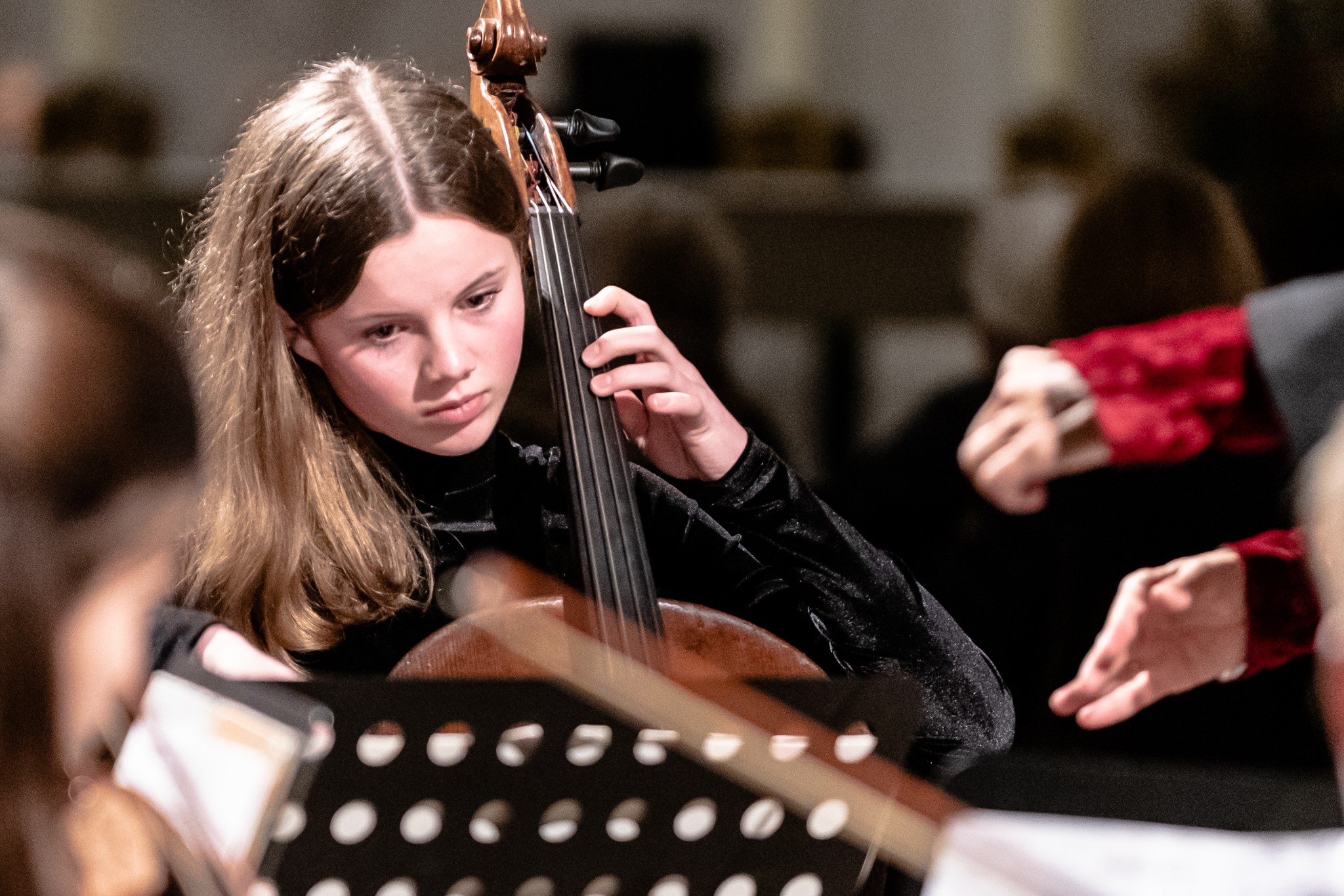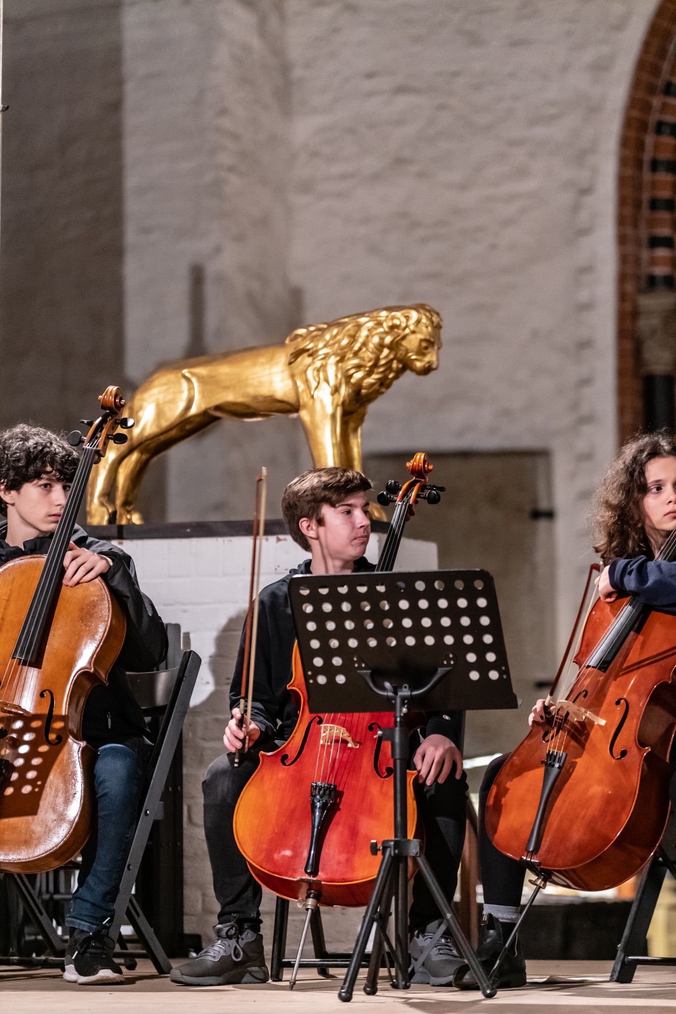Etwas Besonderes am Domkonzert ist, dass zwischendurch nicht geklatscht wird. Die wundervolle und weihnachtliche Stimmung wird immer weitergeführt und alle Ohren des Publikums sind das ganze Konzert lang gespitzt. Das Schulorchester musiziert professionell mit Stücken von D. Gallo und A. Corelli. Frau Linowitzki hat extra ein großes Celloensemble auf die Beine gestellt, in das alle Cellisten und Cellistinnen des JuniOrchester und des Schulorchesters eingebunden sind. Es hat die Ehre, auf der Westempore zu spielen.