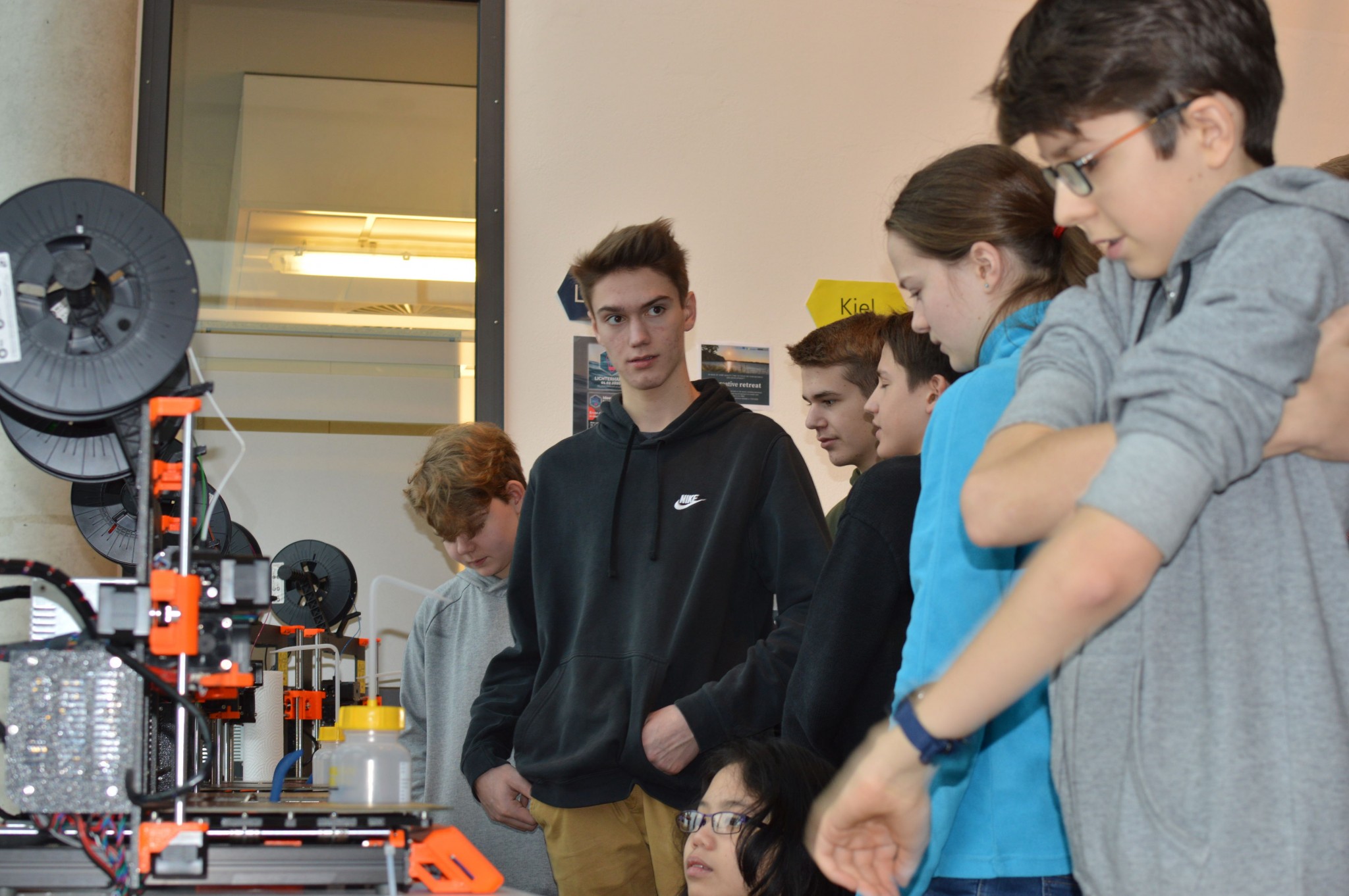 Am Dienstag, dem 21.01.2020, ging es dann um 8:50 Uhr los – erst eine kleine Führung durch den sogenannten FabLab , den Keller der Technischen Hochschule Lübeck. Dort kann jede/r einfach hingehen und alles bauen oder basteln, was einem in den Sinn kommt! Ob man etwas nähen möchte, einen Tisch bauen will, oder vielleicht doch eher Lust hat, einen riesigen Roboter zu bauen – alles geht dort!