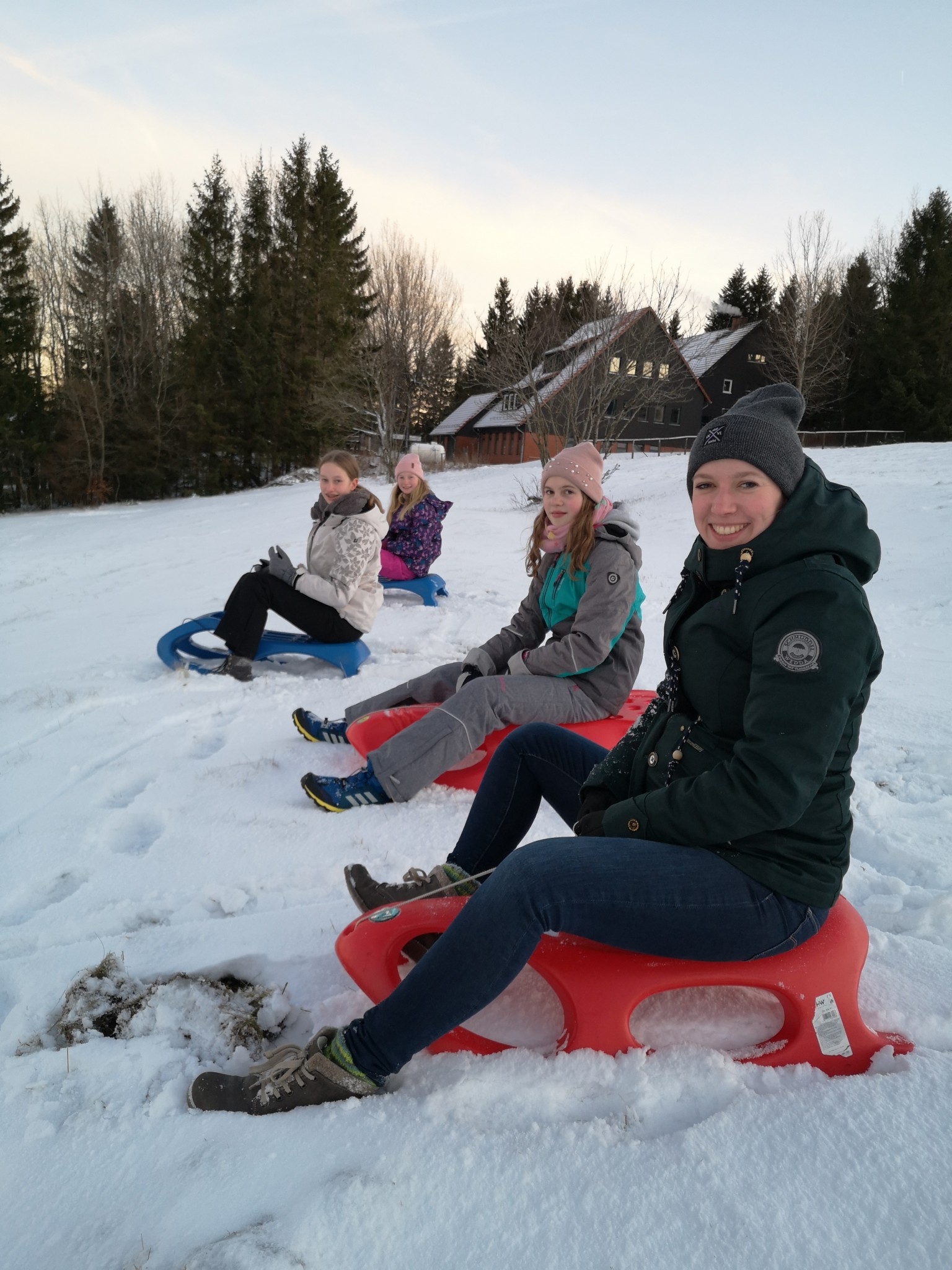 Zwar hatten wir nicht ausreichend Schnee, um Ski fahren zu können, aber wir konnten immerhin Schlitten fahren! Am Mittwochabend wurden sogar Mondscheinrodeln und Mondscheinverstecken angeboten. Einige von uns beobachteten mit Frau Böttger auch die Sterne. Wir nutzten auch häufig die Schwimmhalle vor Ort – Herr Schulz führte mit einer Klasse die „Olympischen Wasserspiele“ durch. Einige Wanderfreudige bestiegen mit Frau Scheibe am Donnerstag sogar den Brocken!