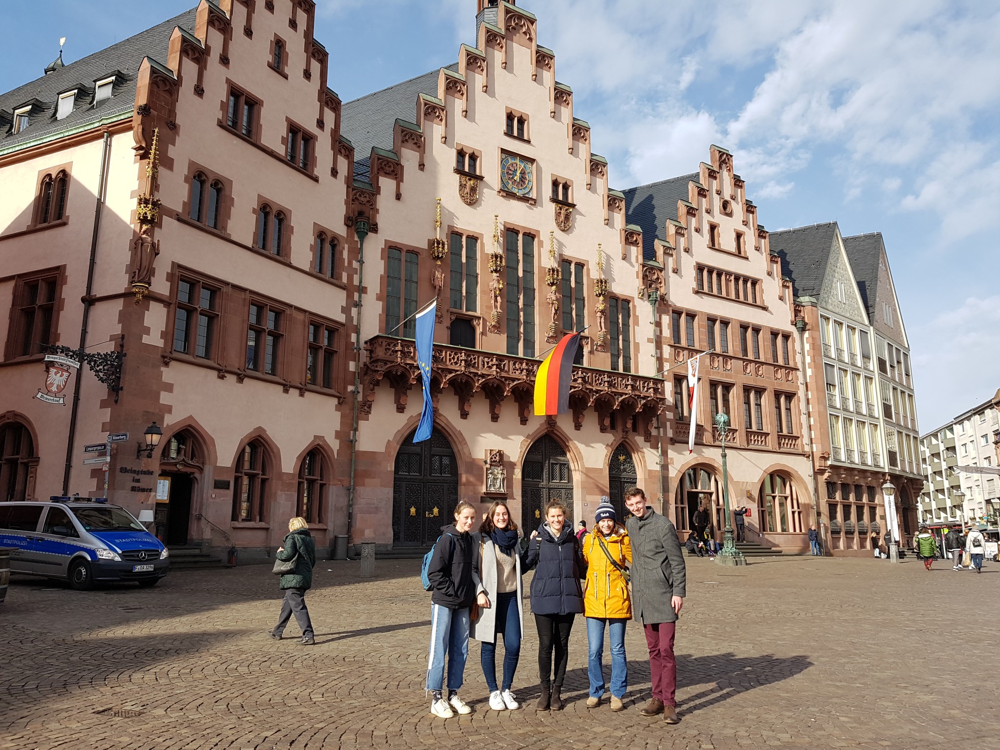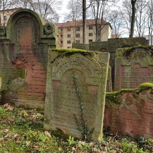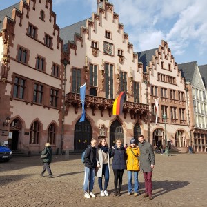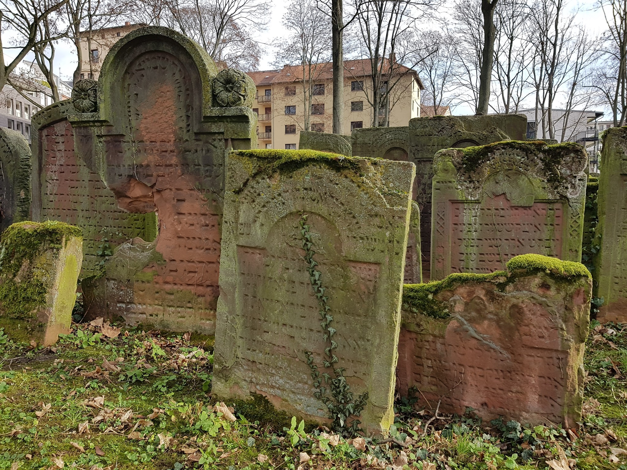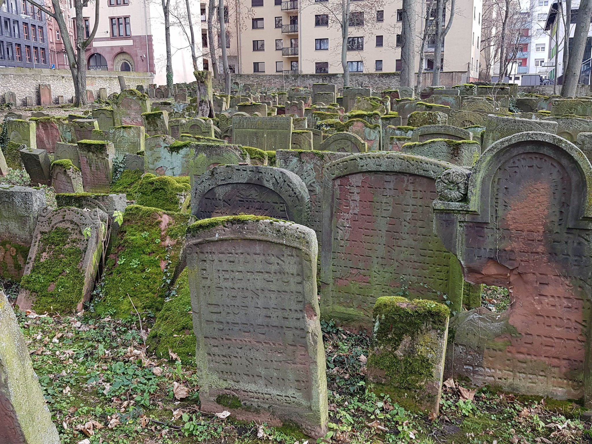Die Hinfahrt verlief aber glücklicherweise ereignislos, und die Jugendherberge konnte ohne Probleme bezogen werden. Am Sonntag startete unser Tag mit einem Besuch im Museum Judengasse, wo wir lernten, wann die Frankfurter die in der Stadt lebenden Juden aus der Innenstadt verbannt hatten und wie diese eng zusammengepfercht in schmalen Häusern auf begrenztem Grund zusammenleben mussten. Auch der angrenzende Jüdische Friedhof, der während des Nationalsozialismus geschändet und dessen Grabsteine größtenteils als Baumaterial verwendet wurden, wirkte auf uns beklemmend – insbesondere angesichts der wachsenden Geschichtsvergessenheit in Teilen der deutschen Bevölkerung.