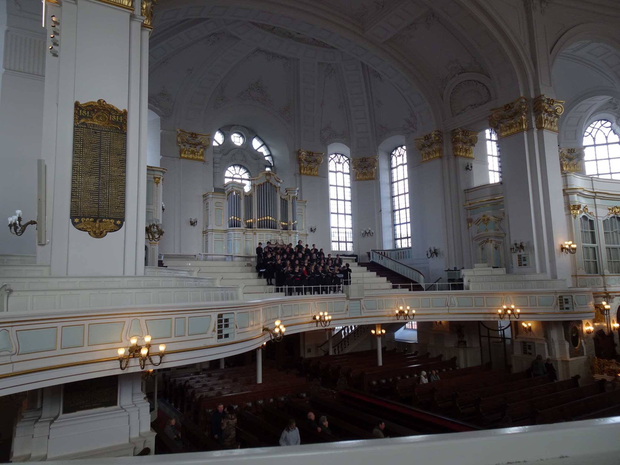 Es wurde viel geprobt, aber wir konnten einige Ergebnisse auch direkt zum Besten geben. Highlight war der Auftritt in einer Mittagsandacht im sonnendurchfluteten Michel, und die herrliche Akustik kam den Klangstücken sehr zugute.