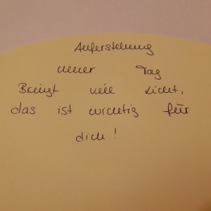 Wir wünschen Euch, dass Ihr in dieser seltsamen Zeitlosigkeit aus den Ostertagen etwas Besonderes machen und sie mit Mut und Hoffnung füllen könnt!