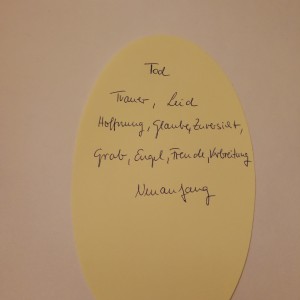 | 1 | 1 | Ein Gedanke,ein Gegenstand, eine Farbe, ein Geruch o. ä. |