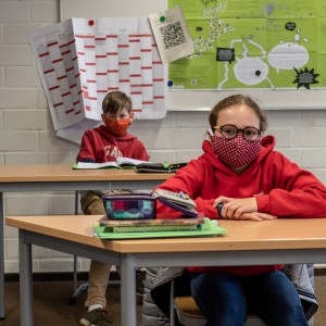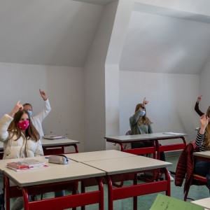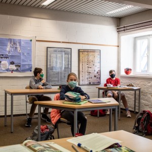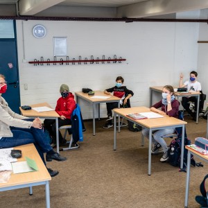 Die Kinder aus der 6e waren die Ersten, ihnen folgten am 6. Mai im Viertelstundentakt die 6b, 6c, 9a und 9d, um nach über sieben Wochen wieder Unterricht in der Schule zu haben. Desinfektionsmittel, Einbahnstraßenschilder, Tische mit 1,5m Abstand voneinander, Atemschutzmasken – und dennoch: vertraute Gesichter, fröhliche Stimmen, Gemeinschaft. Endlich!