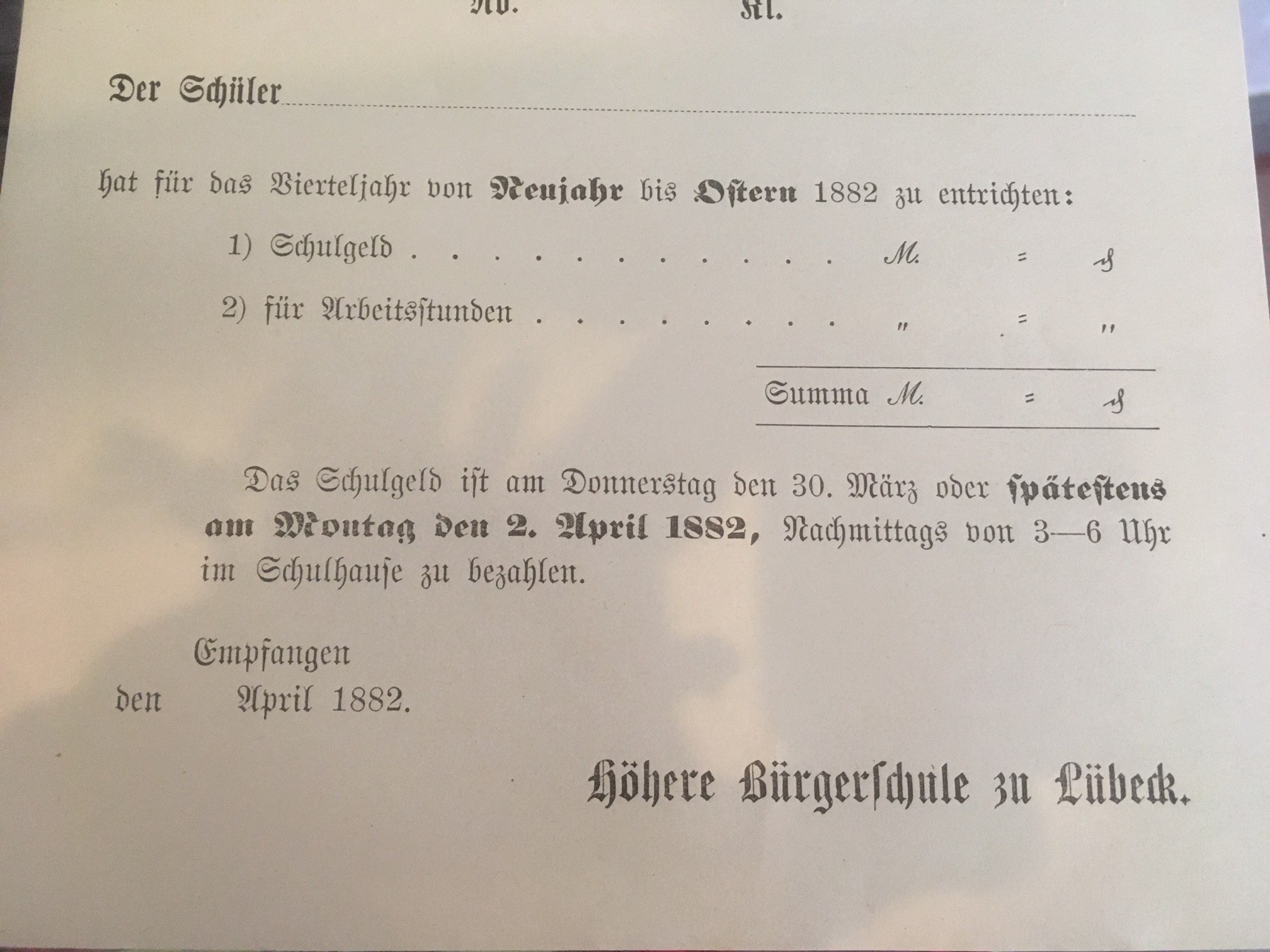 Dafür musste aber vor 138 Jahren auch  ein angemessenes Schulgeld entrichtet werden!