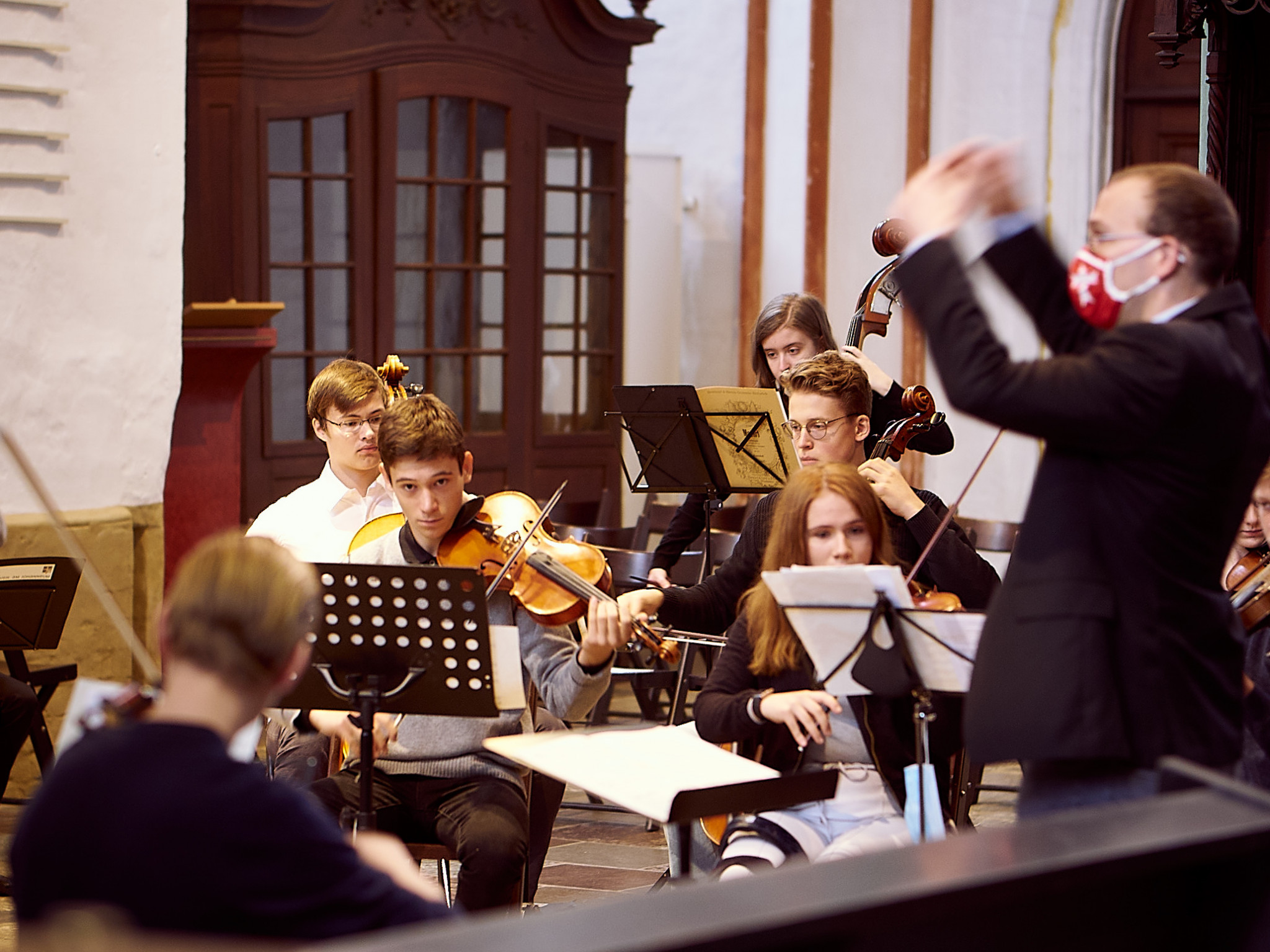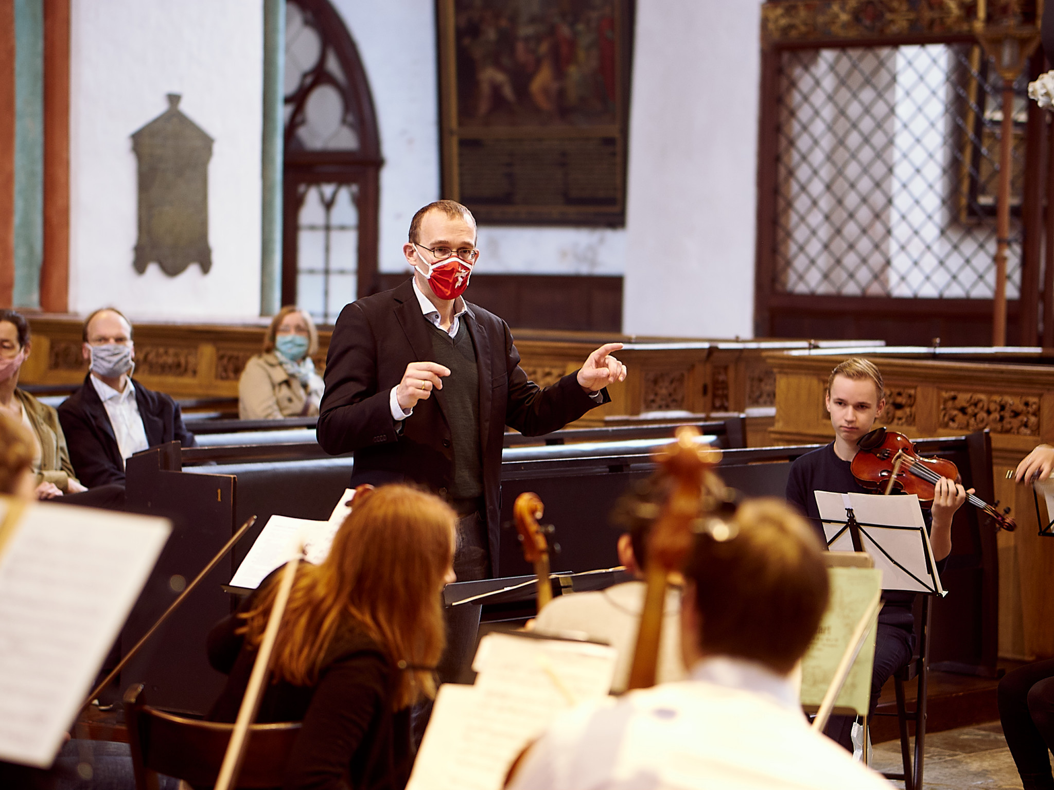Vier Stücke von Mozart, Bach, Elgar und Grieg wurden gespielt. Vier Stücke, die nur ein paar Mal geprobt werden konnten – und die dennoch den Kirchenraum füllten und die Zuhörenden erreichten. Denn eigentlich ist es ja schön, dass unser Orchester überhaupt wieder spielen darf, auch wenn man nach Jahrgängen getrennt sitzen muss. Und das Motto ist doch: „Fürchte dich nicht!“
