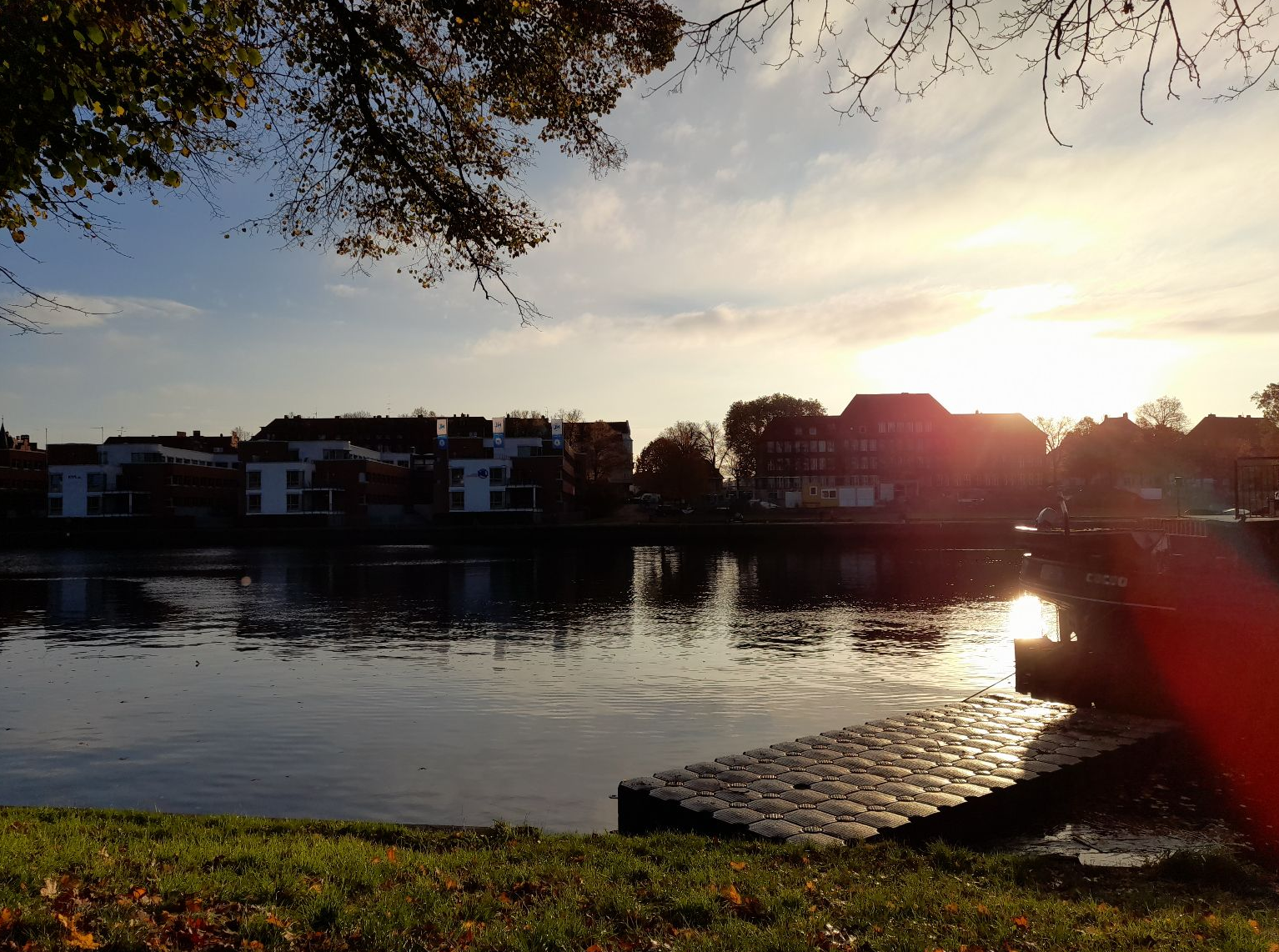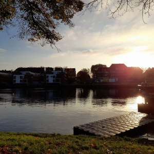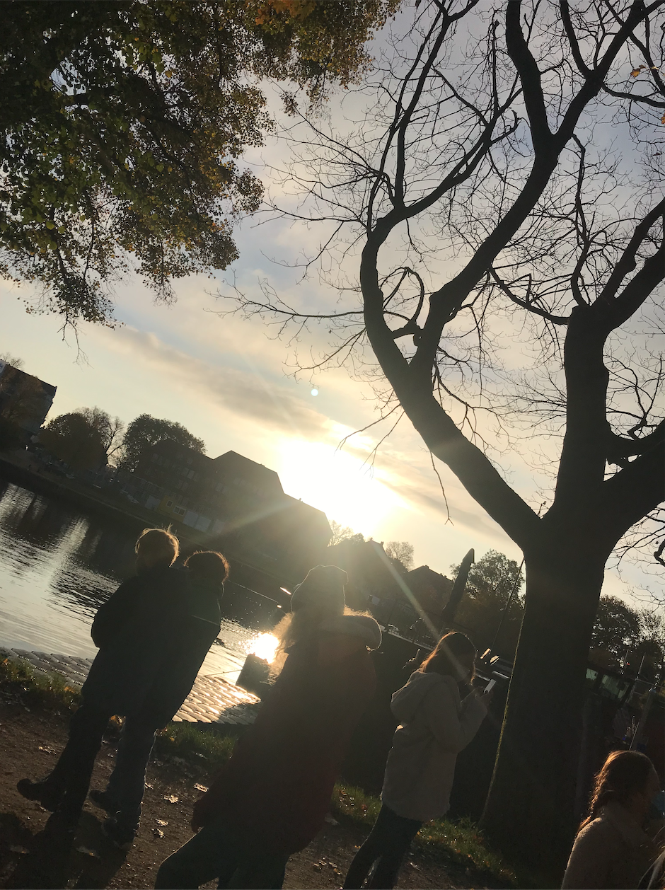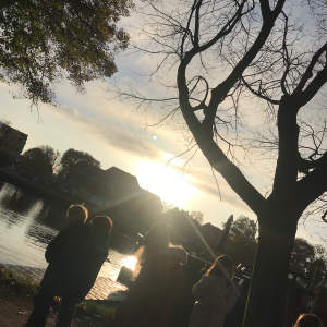 An einem wunderschönen Herbstmorgen ging die ganze Klasse 5c am Kanal spazieren. Der Auslöser dafür war, dass wir das Buch „Momo“ lesen und über den Spaziergang die Zeit vergessen sollten. Außerdem hatten die Kinder, die ein Handy dabei hatten, die Aufgabe, Fotos von dem sehr schönen Sonnenaufgang zu machen. Es entstanden tolle Fotos, z.B. eins von einem Steg, hinter dem die Sonne aufging. Unsere Klassenlehrerin, Frau Christiansen, hat uns während des ganzen Ausfluges drei sehr wundervolle Herbstgedichte erzählt.