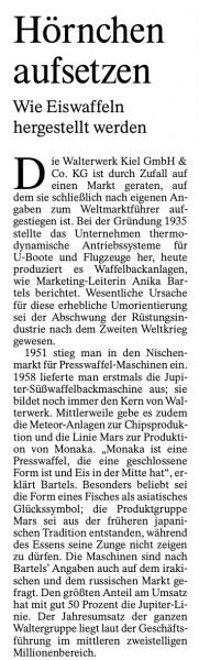hat Lieve Münte aus der F.A.Z.-AG ganz bestimmt nicht! Dafür aber eine toll recherchierte Reportage über die Fabrikation von Eiswaffeln verfasst, die jetzt in der großen Tageszeitung erschienen ist. Für alle Sommerfreunde hier zur Vorfreude nachzulesen: