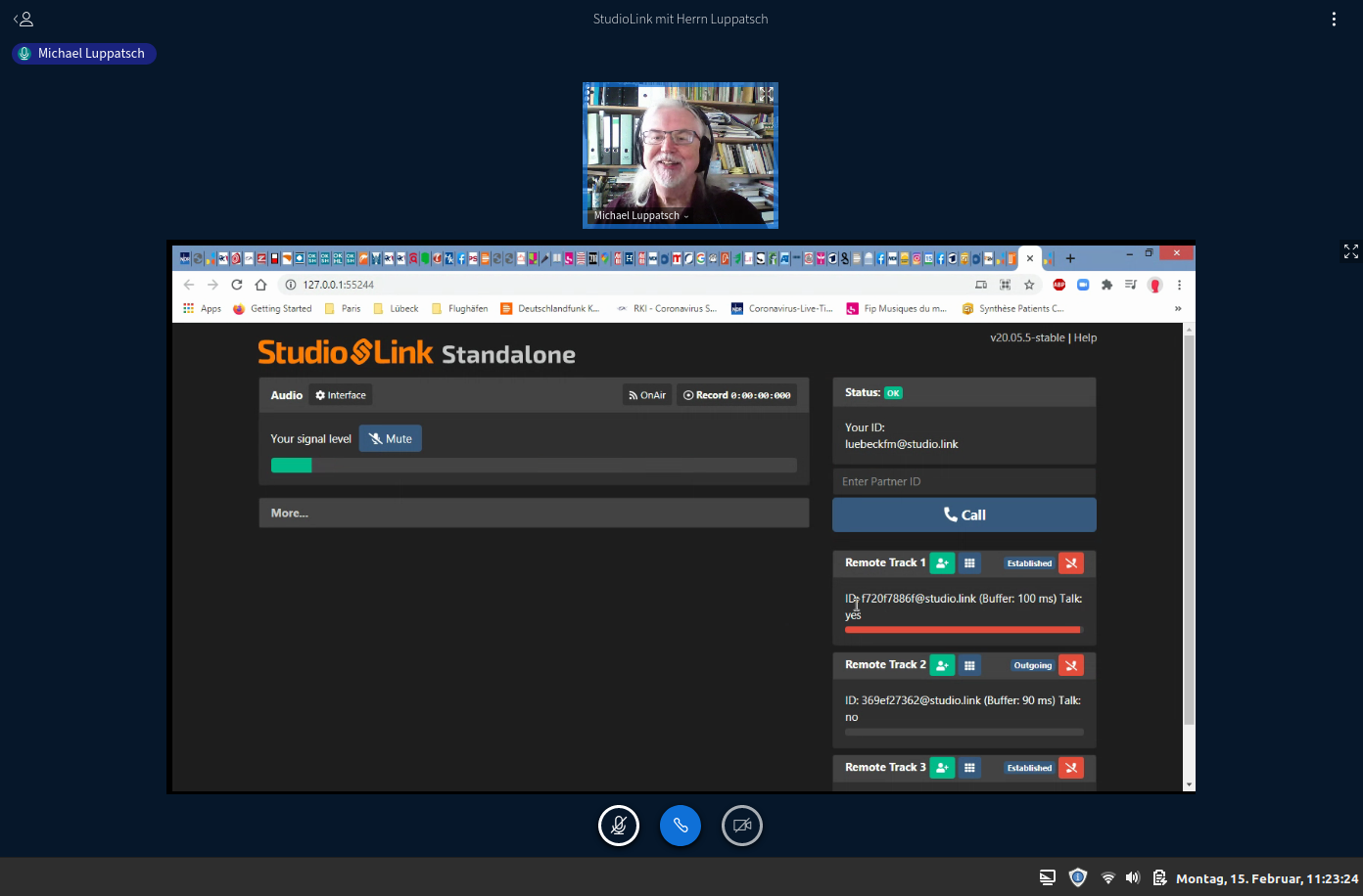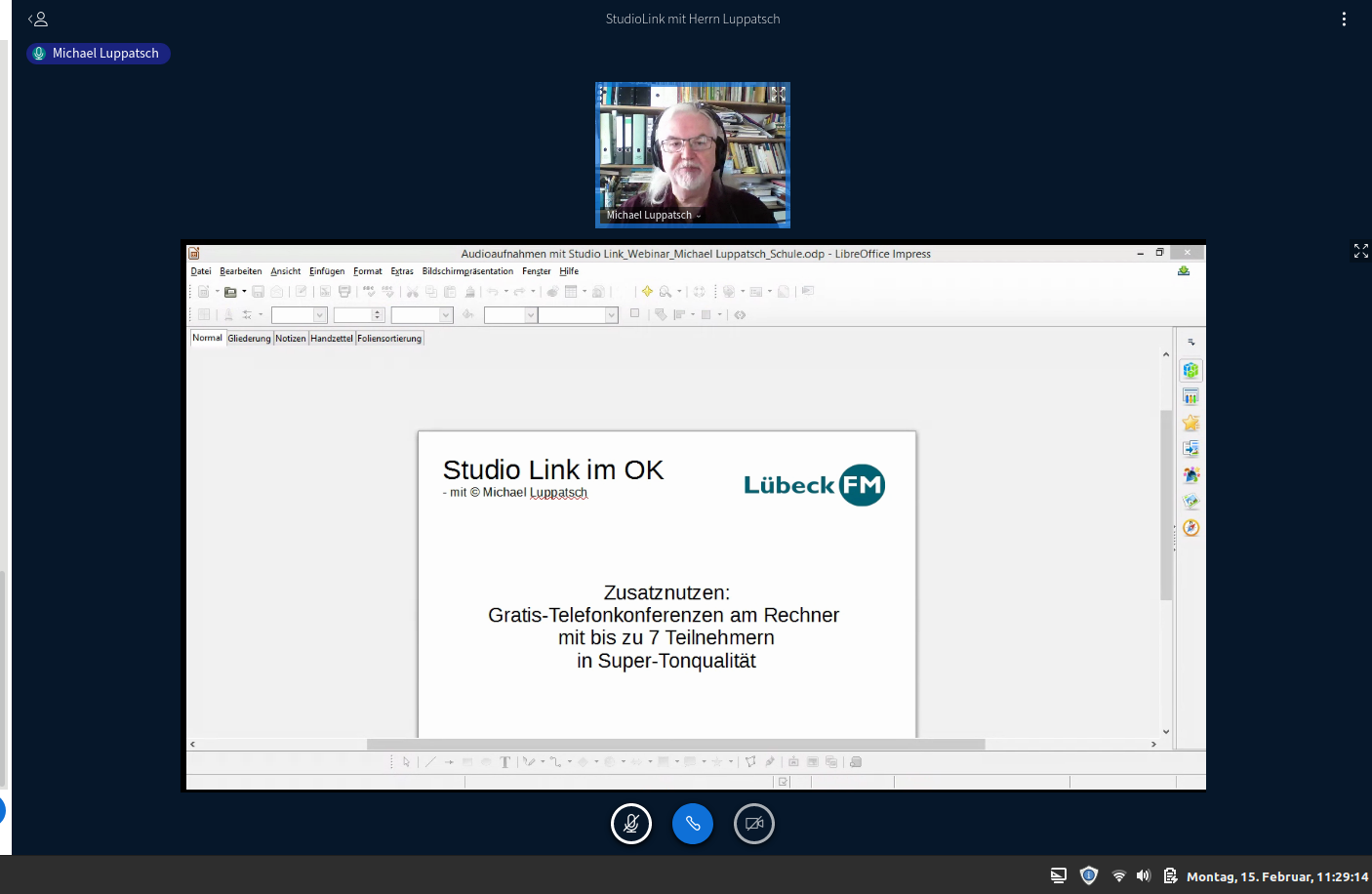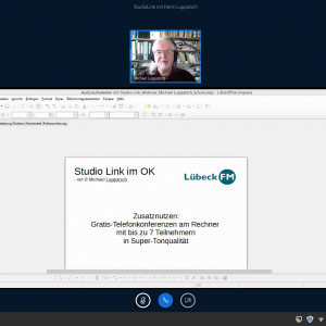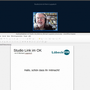 Der Offene Kanal, auch „OK“ genannt, kann zum Beispiel Interviews mit „Studio Link“ aufnehmen. Dabei sitzen die Personen teilweise Kilometer voneinander entfernt, klingen aber, als ob sie direkt in einem Raum säßen. Also genau richtig für uns!