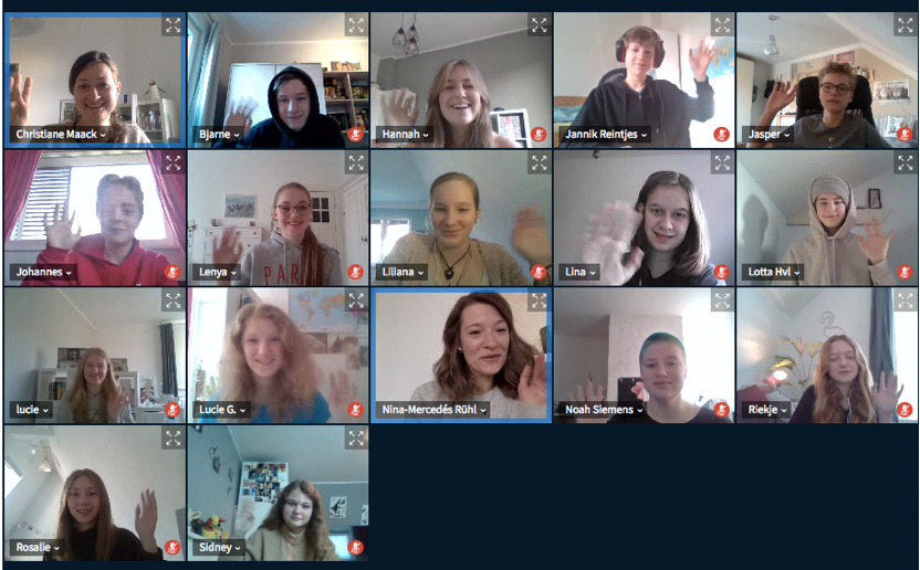 Wir hatten dann das Glück, dass wir mit Nina Mercedés-Rühl, der Schauspielerin des Solostücks, sprechen konnten. Sie kam am Donnerstag in unsere Videokonferenz und wir durften ihr Fragen zu dem Stück stellen oder auch wie sie z.B. zur Schauspielerei gekommen ist. Sie war total offen und sehr lieb und es hat richtig Spaß gemacht, ihr zuzuhören und auch ein wenig hinter die Kulissen des Stücks schauen zu können.