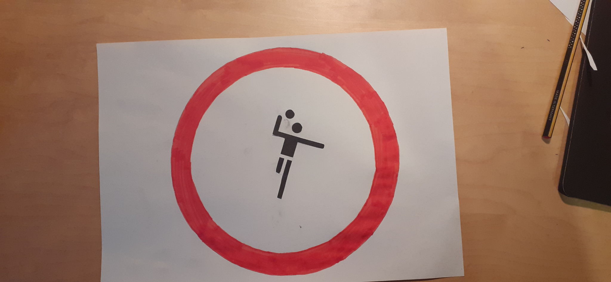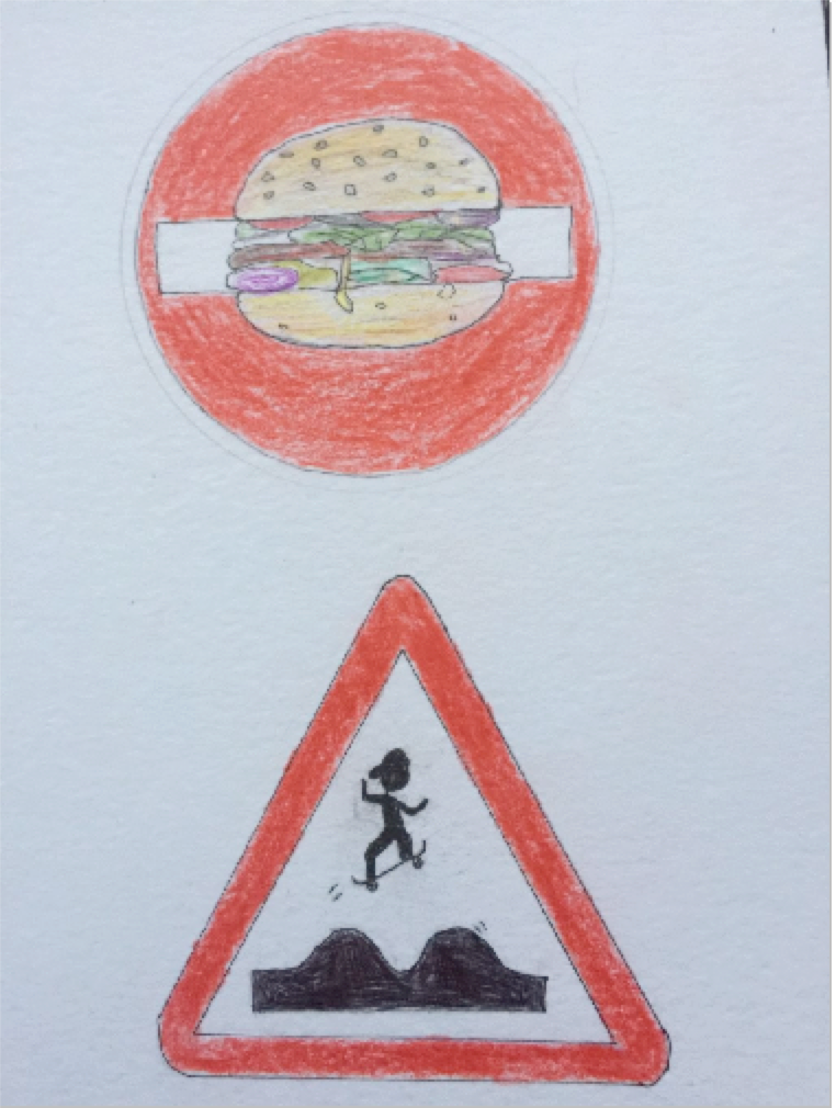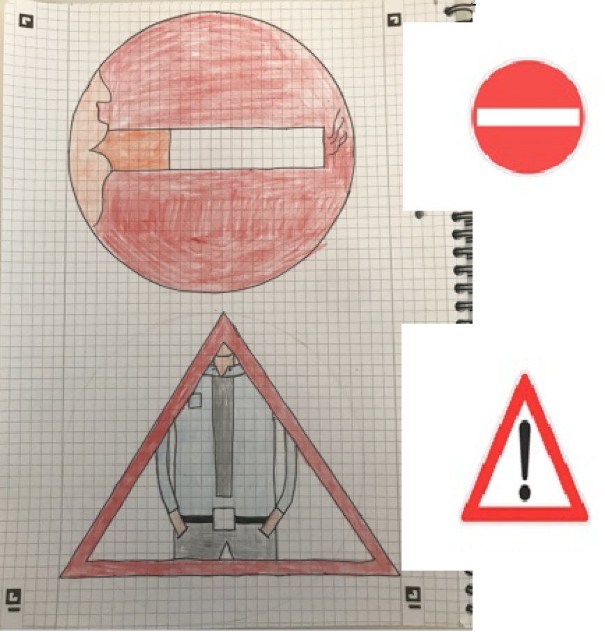 Die Schüler:innen aus der 8a und 8b haben versucht, den Schildern mal eine ganz neue Bedeutung zu verleihen, und es sind viele kreative und originelle Ergebnisse dabei herausgekommen. Manche sind lustig und andere eher politisch oder nachdenklich, aber eines haben alle gemeinsam: Für den Straßenverkehr sind sie eindeutig nicht geeignet!