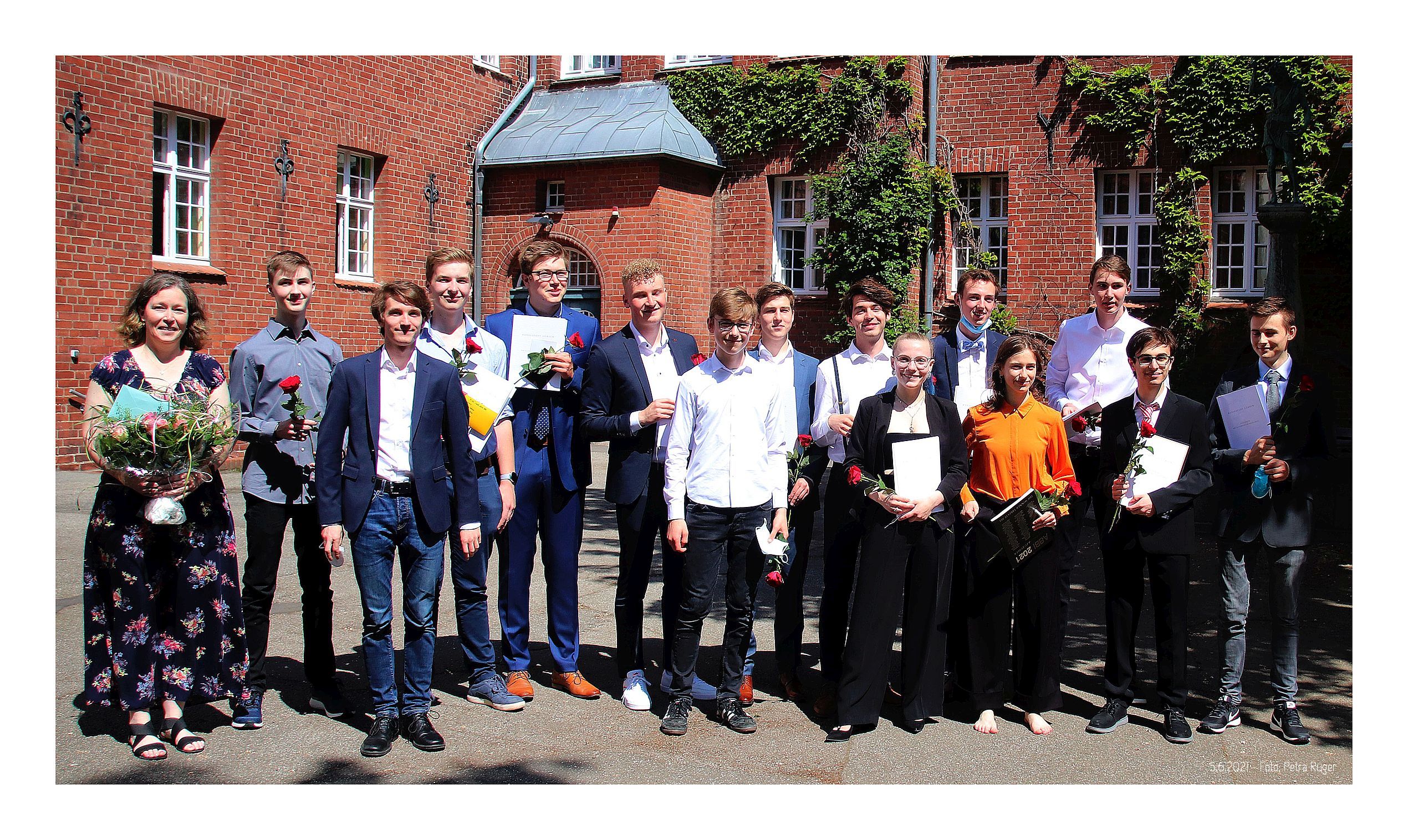 Voller Freude und Stolz verabschiedet das Johanneum den Abiturjahrgang 2021. Wochenlanges Homeschooling in der Q1, verschiedene Unterrichtsformate in der Q2, der Verzicht auf Feiern und Studienfahrten prägten diese Oberstufenzeit. Aber auch ein großer Zusammenhalt und am Ende ein souverän abgelegtes Abitur!