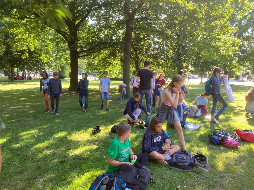 Pünktlich um 8 Uhr morgens trafen wir uns im Klassenzimmer und gingen gemeinsam mit Herrn Lüttig und Frau Wagner hinunter auf den Bolzplatz.