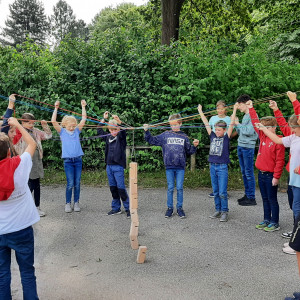 Donnerstag war dann ein besonderer Tag! Der erste gemeinsame Ausflug mit der neuen Klasse stand an: Im Gänsemarsch ging es nämlich in den Drägerpark! Dort wurden nicht nur Gruppen- und Teamspiele veranstaltet, sondern auch auf dem Spielplatz herumgetobt sowie Räuber und Gendarm gespielt.