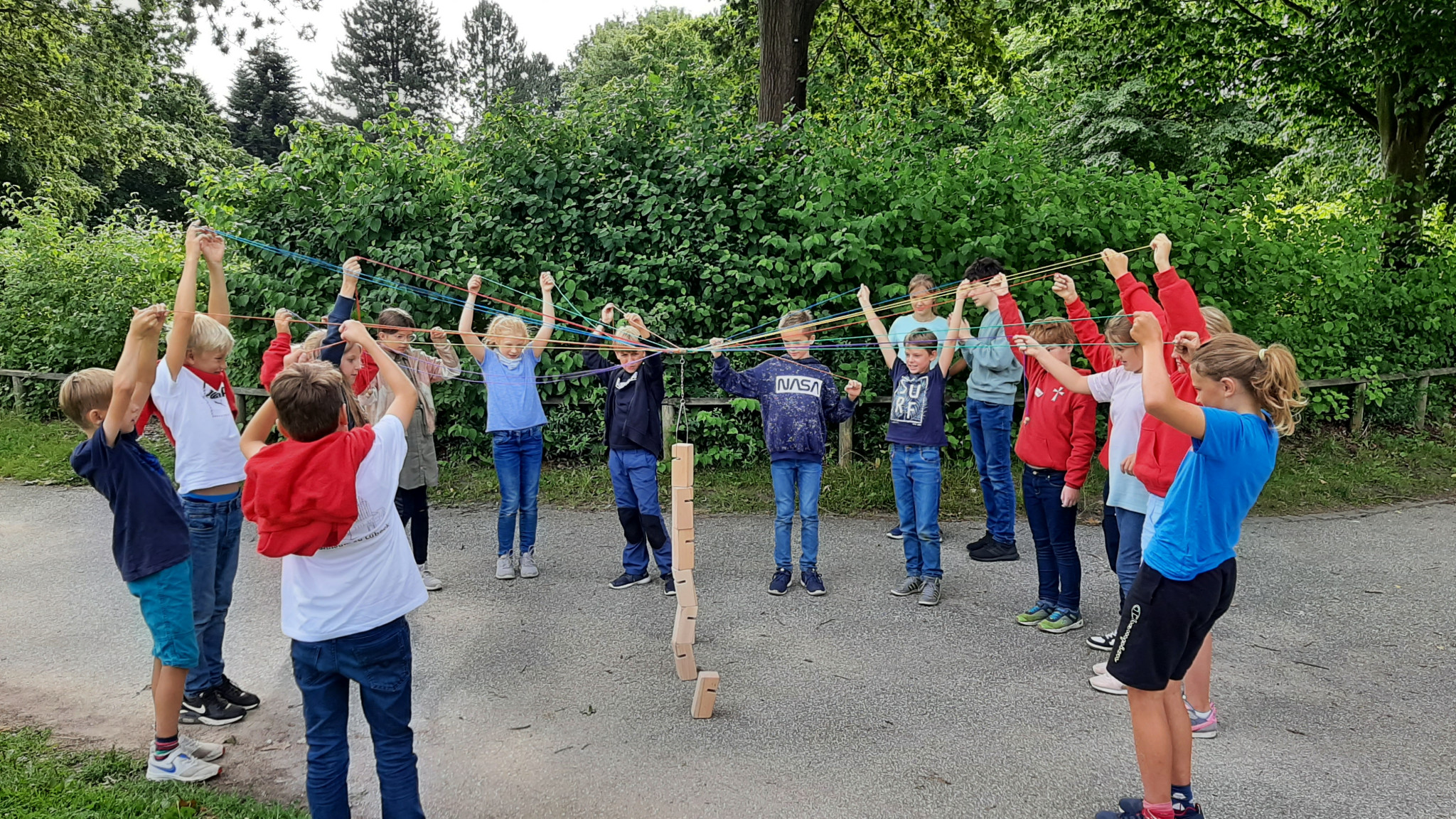 Donnerstag war dann ein besonderer Tag! Der erste gemeinsame Ausflug mit der neuen Klasse stand an: Im Gänsemarsch ging es nämlich in den Drägerpark! Dort wurden nicht nur Gruppen- und Teamspiele veranstaltet, sondern auch auf dem Spielplatz herumgetobt sowie Räuber und Gendarm gespielt.