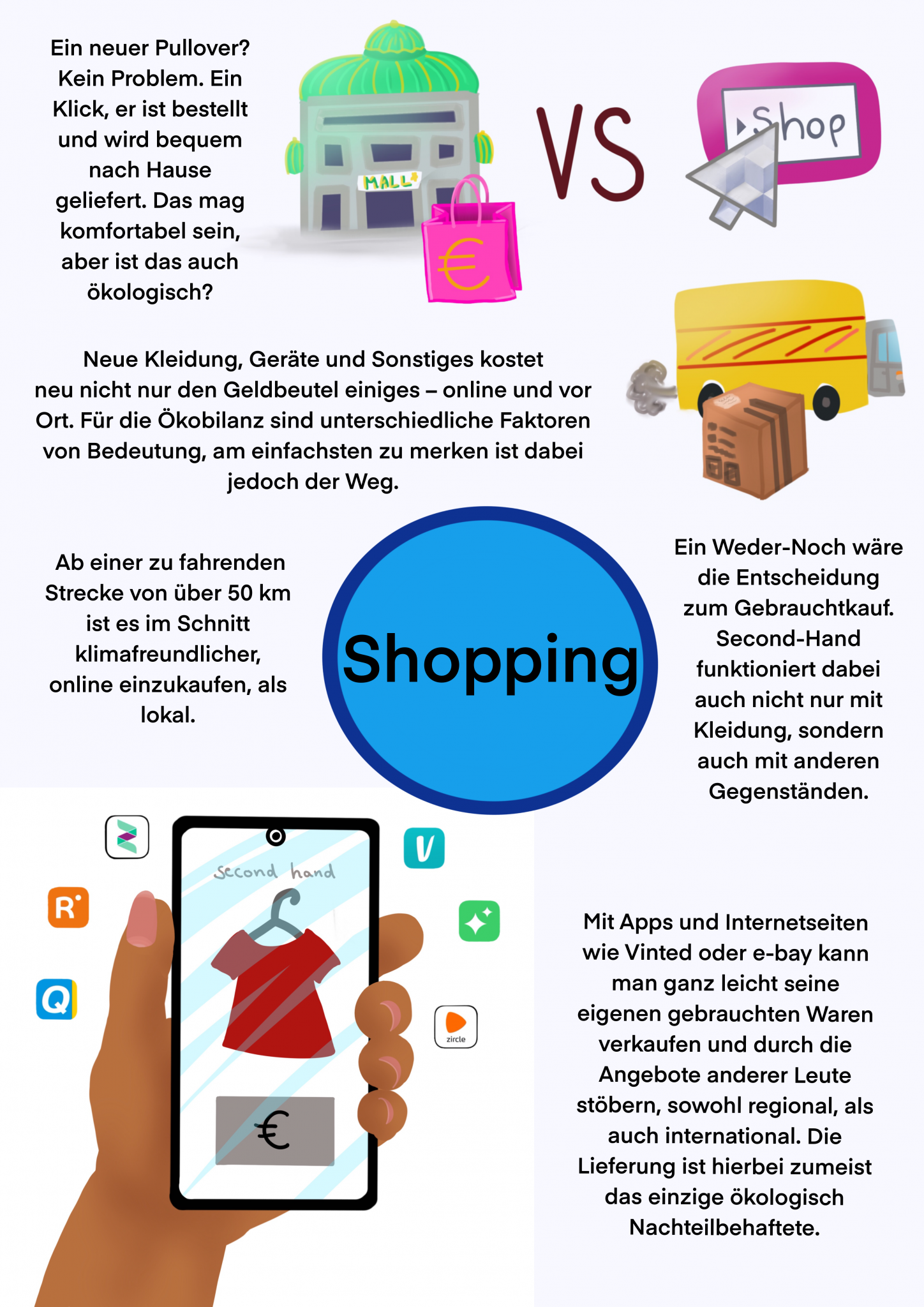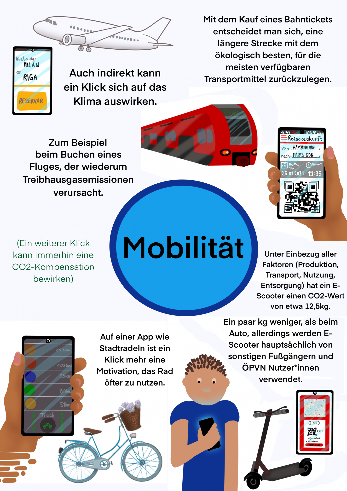 Finja Sach, ebenfalls aus der Q2a, führt uns mit selbst gestalteten Informationsblättern über die Ökobilanz von Klicks viele Fakten vor Augen, bei denen viele sonst eher wegschauen.