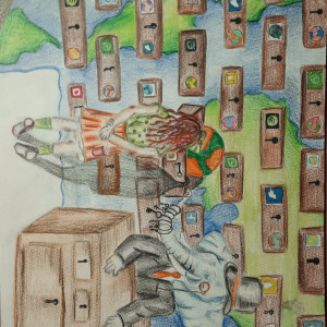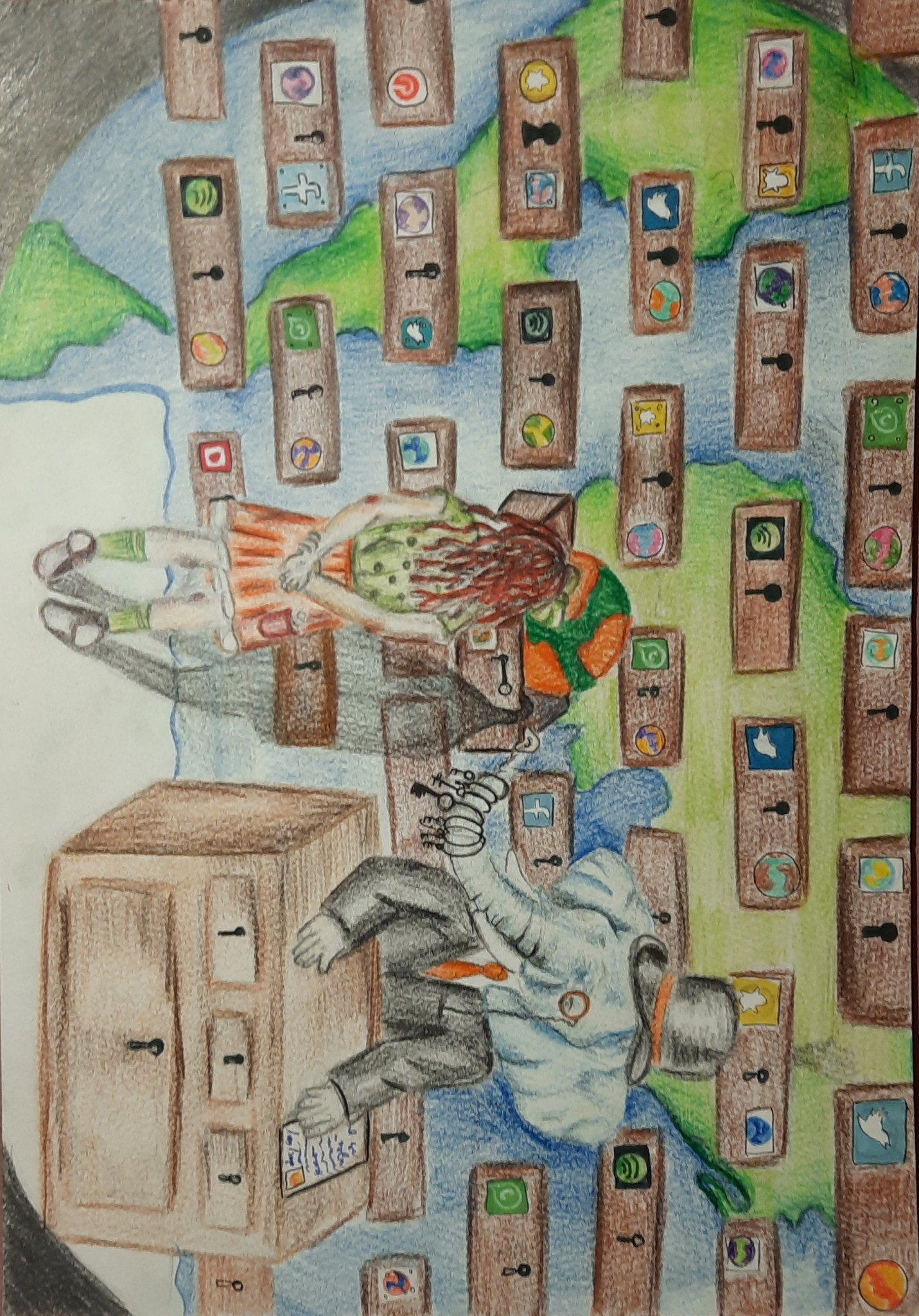 Helena Stöter aus der 9d hat dagegen ein Bild gemalt, welches uns das Ausmaß und die Bedeutung von Apps in unserer Welt auf sehr künstlerische Weise zeigt.