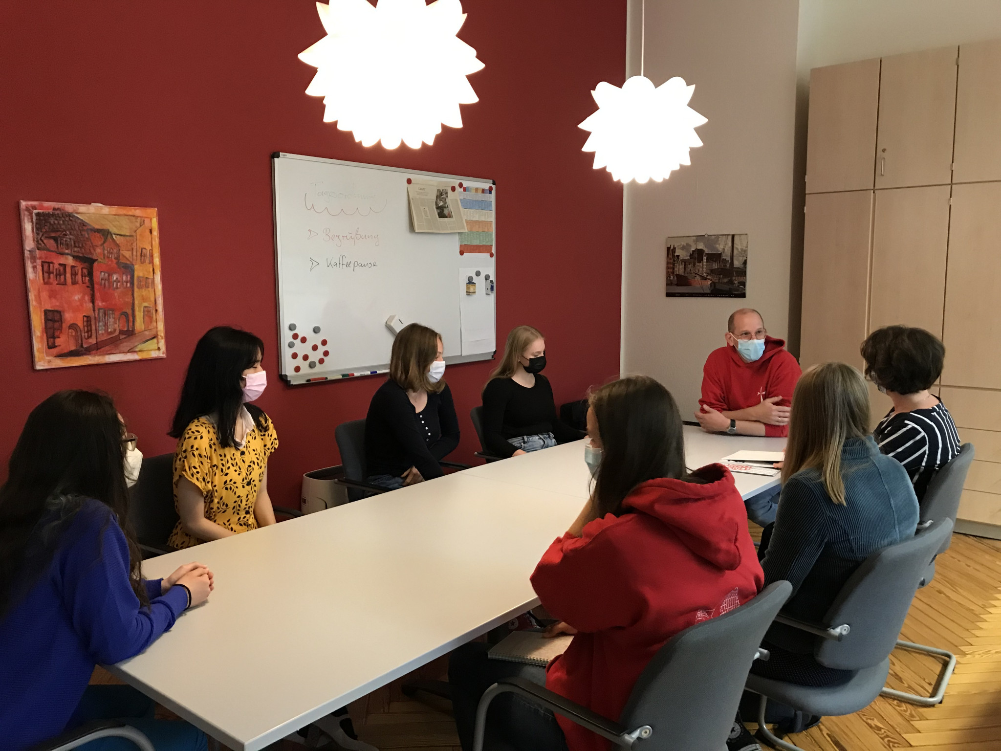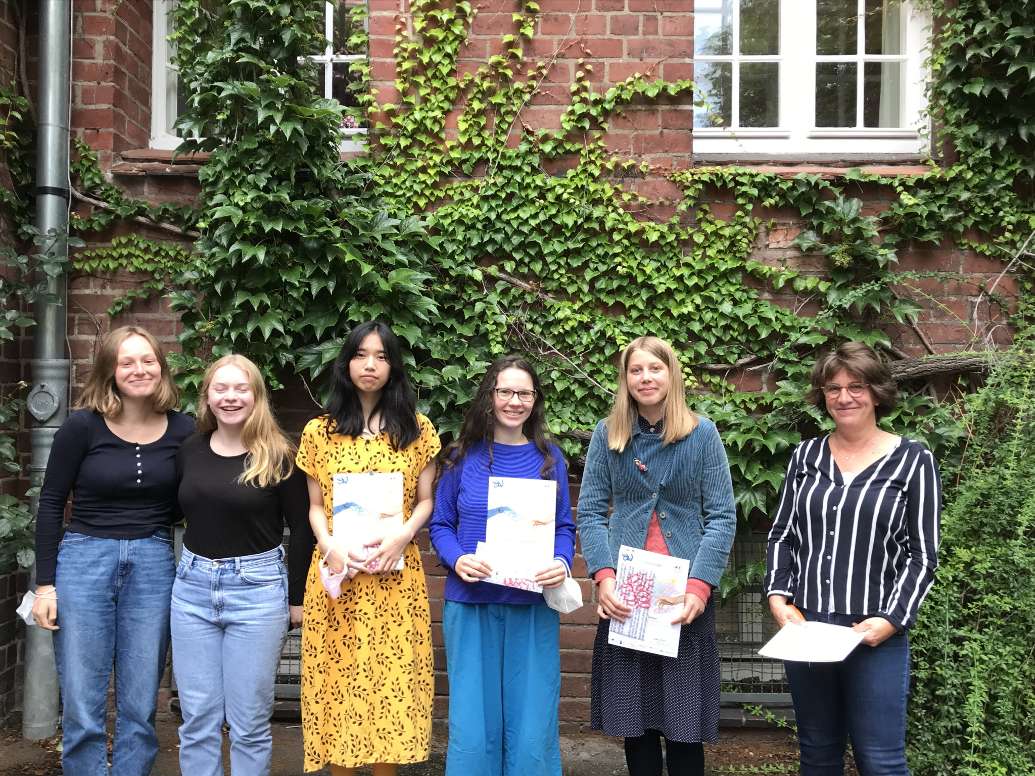 Drei weitere Schülerinnen des Johanneums haben mit sehr unterschiedlichen, aber alle auf ihre eigene Weise umwerfenden Arbeiten Preise auf Landesebene (also aus ganz Schleswig-Holstein) errungen. Leider konnte die Preisübergabe nicht wie in den anderen Jahren in großem Rahmen mit allen anderen Gewinner:innen stattfinden, sondern nur in kleinem Kreis mit Herrn Dr. Janneck und Frau Wagner in unserer Schule. Aber trotzdem herrschte im Schulleiterbüro eine feierliche Stimmung, als die Urkunden und Buchgutscheine einzeln übergeben wurden. Und die Fotos mit unserem Schulleiter Herrn Janneck und den Gewinnerinnen sehen ja auch sehr professionell aus!