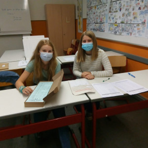 Bevor es ab in die Wahlkabine ging, kontrollierten wir die Dokumente und trugen alle Wähler:innen in ihre Klassenlisten ein.  Wir achteten streng darauf, dass die Wahlgrundsätze eingehalten wurden: allgemein, gleich, unmittelbar, frei und geheim! Bald lugten nur noch die konzentrierten Gesichter der Mitschüler:innen hinter den Wahlkabinen hervor. Sobald die Kreuze gesetzt waren, wurde der Zettel gefaltet und verschwand in der Wahlurne. Ganz ohne Stress verlief das nicht, denn es gab nur vier Wahlkabinen. Doch alle machten gut mit und die Wahl verlief ohne große Zwischenfälle. Uns hat es sehr viel Spaß gemacht und es war aufregend, die anderen Jahrgänge beim Wählen zu begleiten. Für uns selbst war es die erste Wahl, was die Aufregung steigerte und die Entscheidung erschwerte.