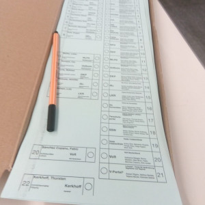 Wir, der WPK-WiPo-Kurs von Frau Stehr, durften dabei die Organisation übernehmen. In Teams von 3-4 Leuten übernahmen wir die Aufsicht über das Wahllokal in Raum H205. Vorher hatte jeder Schüler und jede Schülerin eine Wahlbescheinigung erhalten, die zusammen mit einem Ausweis vorgezeigt werden musste.