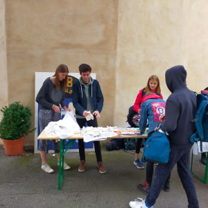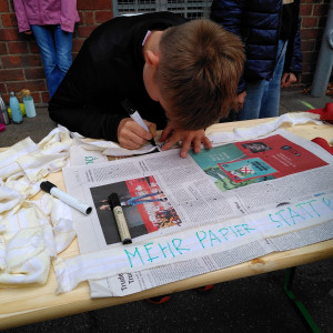 Das Schreiben der sogenannten Klimabänder fand am Freitag in den großen Pausen im Zusammenhang mit dem globalen Klimastreik statt und wurde vom Greenteam organisiert. Obwohl diese Aktion relativ spontan war, haben viele von euch mitgemacht und ihre Meinung kreativ ausgedrückt. Dadurch entstanden viele gelungene Klimabänder, die jetzt unseren Schulhof schmücken und auf das Thema aufmerksam machen. Es lohnt sich, sie zu lesen und Ideen mitzunehmen!