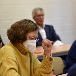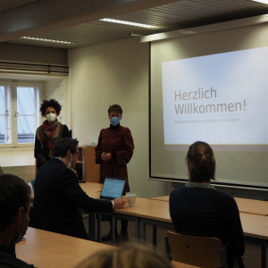Dieses Projekt begann mit Frau Benkert, die zufällig während einer Recherche darauf gestoßen ist. Der Mehrwert, nicht nur für den WiPo-Unterricht, sondern für viele andere Fächer auch, zeigte sich schnell. Tagespolitisch aktuell und mehrperspektivisch – das gab es so noch nicht. Zusammen mit der Haukohl-Stiftung wurde das Projekt erst für sechs bis sieben Schulen in Lübeck angesetzt. Inzwischen arbeiten alle fast alle Schulen (Gymnasien und Gemeinschaftsschulen) mit der App. Der Erfolg zeigt sich auch an diesem Tag in der Aula: Viele Lehrer:innen aus unterschiedlichen Schulen Lübecks sind gekommen, um gemeinsam Ideen zu der App und Erfahrungen auszutauschen. Frau Benkert zeigt in diesem Zusammenhang, wie exemplarisch mit der App gearbeitet werden kann. Gemeinsam mit Josephine, einer Mitarbeiterin des Buzzards, werden Ideen und Anregungen für die zukünftige Arbeit gesammelt.