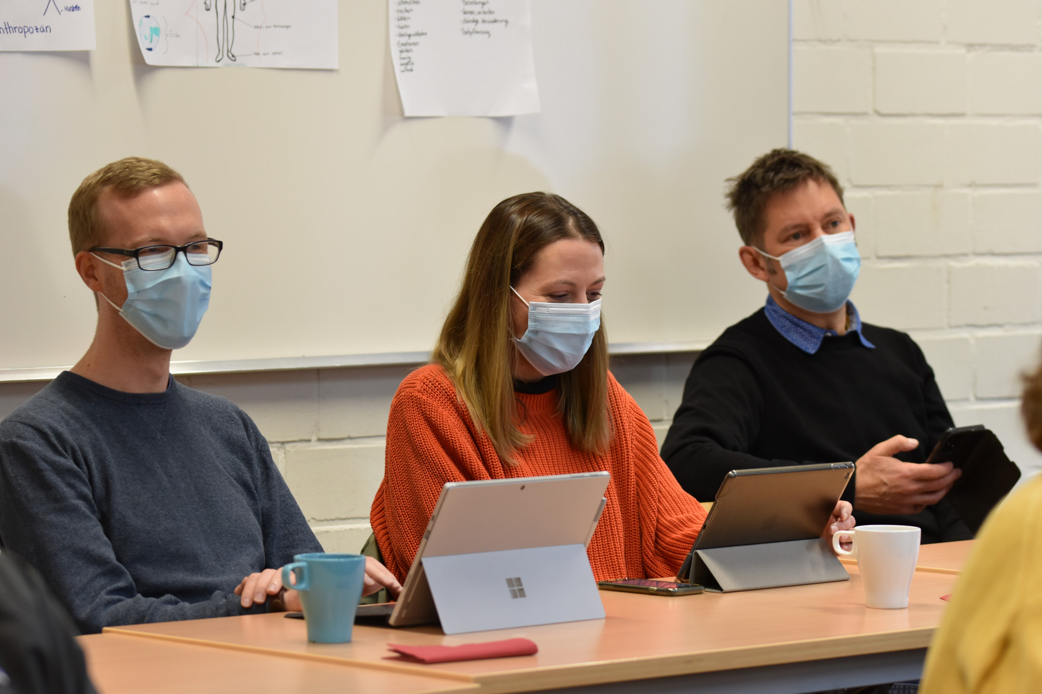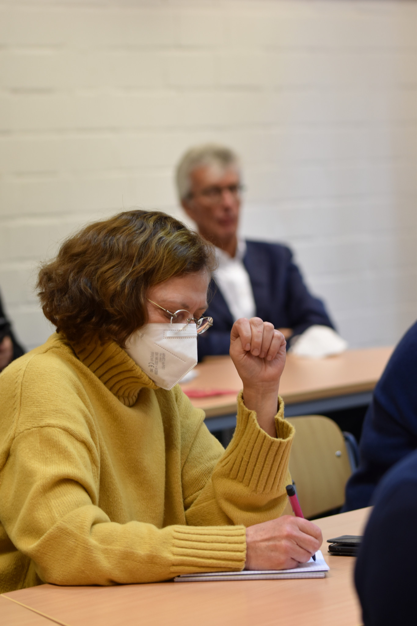 Dieses Projekt begann mit Frau Benkert, die zufällig während einer Recherche darauf gestoßen ist. Der Mehrwert, nicht nur für den WiPo-Unterricht, sondern für viele andere Fächer auch, zeigte sich schnell. Tagespolitisch aktuell und mehrperspektivisch – das gab es so noch nicht. Zusammen mit der Haukohl-Stiftung wurde das Projekt erst für sechs bis sieben Schulen in Lübeck angesetzt. Inzwischen arbeiten alle fast alle Schulen (Gymnasien und Gemeinschaftsschulen) mit der App. Der Erfolg zeigt sich auch an diesem Tag in der Aula: Viele Lehrer:innen aus unterschiedlichen Schulen Lübecks sind gekommen, um gemeinsam Ideen zu der App und Erfahrungen auszutauschen. Frau Benkert zeigt in diesem Zusammenhang, wie exemplarisch mit der App gearbeitet werden kann. Gemeinsam mit Josephine, einer Mitarbeiterin des Buzzards, werden Ideen und Anregungen für die zukünftige Arbeit gesammelt.
