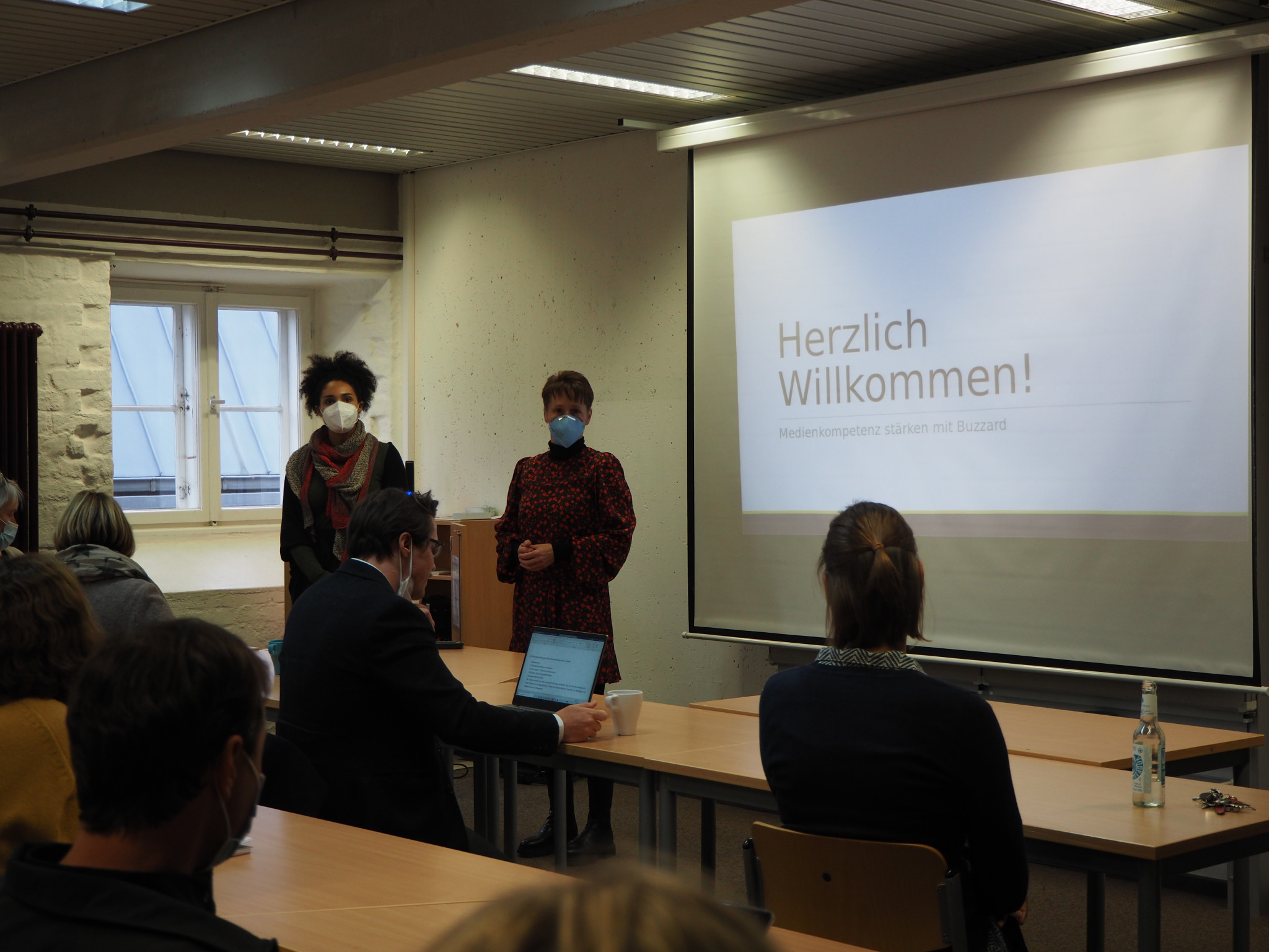 Wer die Welt verstehen will und sich eine eigene Meinung bilden will, muss unterschiedliche Perspektiven kennenlernen. Nach diesem einfachen Prinzip arbeitet die App „Buzzard“, die einige von euch vielleicht schon aus dem Unterricht kennen: Jeden Tag eine neue Debatte mit mindestens vier unterschiedlichen Perspektiven. Wie lässt sich das am besten im Unterricht umsetzen? Am 25.10.2021 fand mit Herrn Haukohl von der Haukohl-Stiftung, Herrn Friedrich, einem Mitbegründer des Buzzards, Herrn Dr. Janneck und vielen interessierten Kolleg:innen aus ganz Lübeck die Auftaktveranstaltung statt.